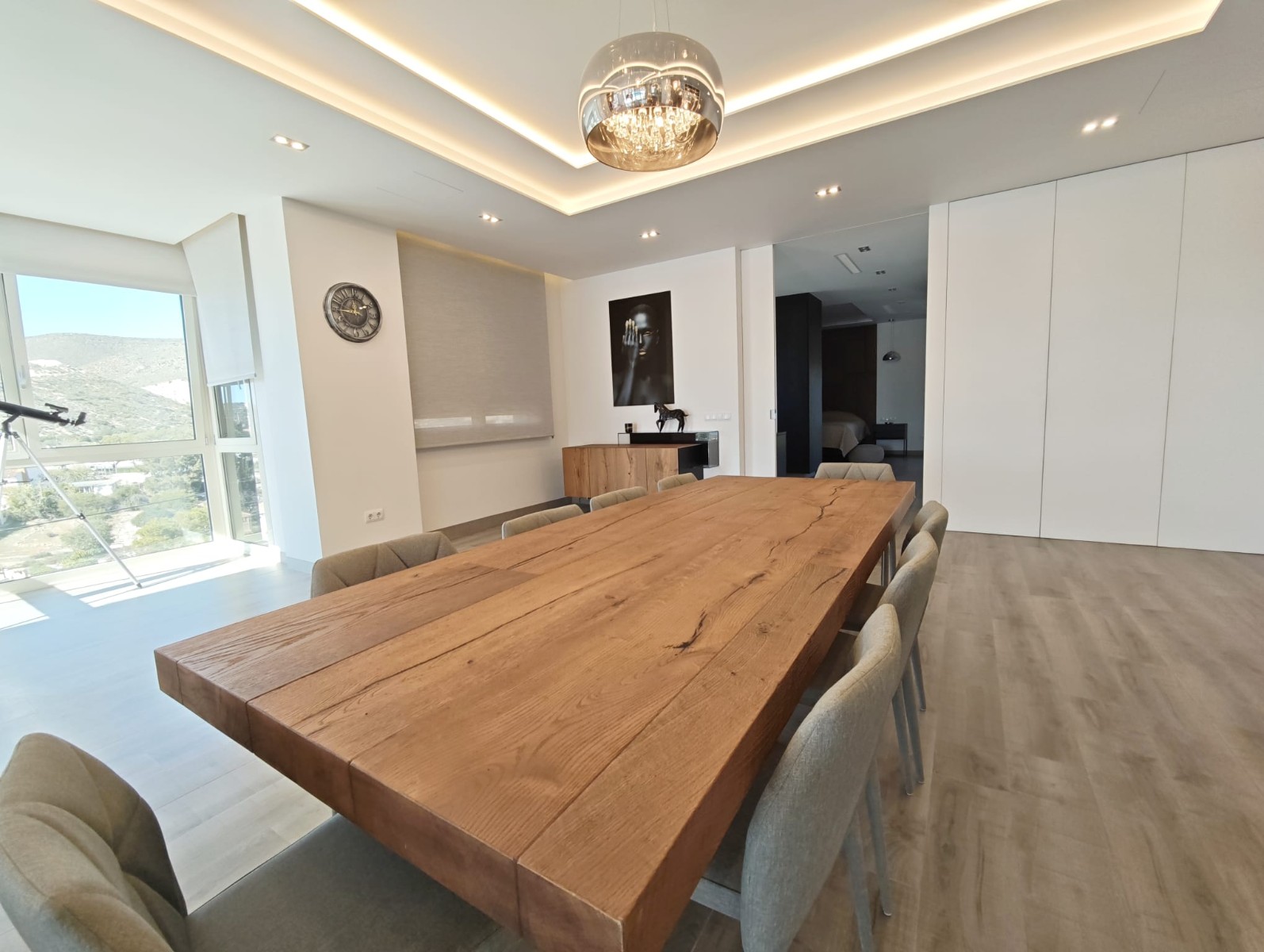 Located just moments from the Mediterranean in El Campello, this impressive modern villa offers a perfect blend of luxury, space and contemporary design. Built in 2020 and set on a generous 1,000 m² plot, the property features approximately 500 m² of built area and enjoys beautiful views of both the sea and the surrounding mountains.