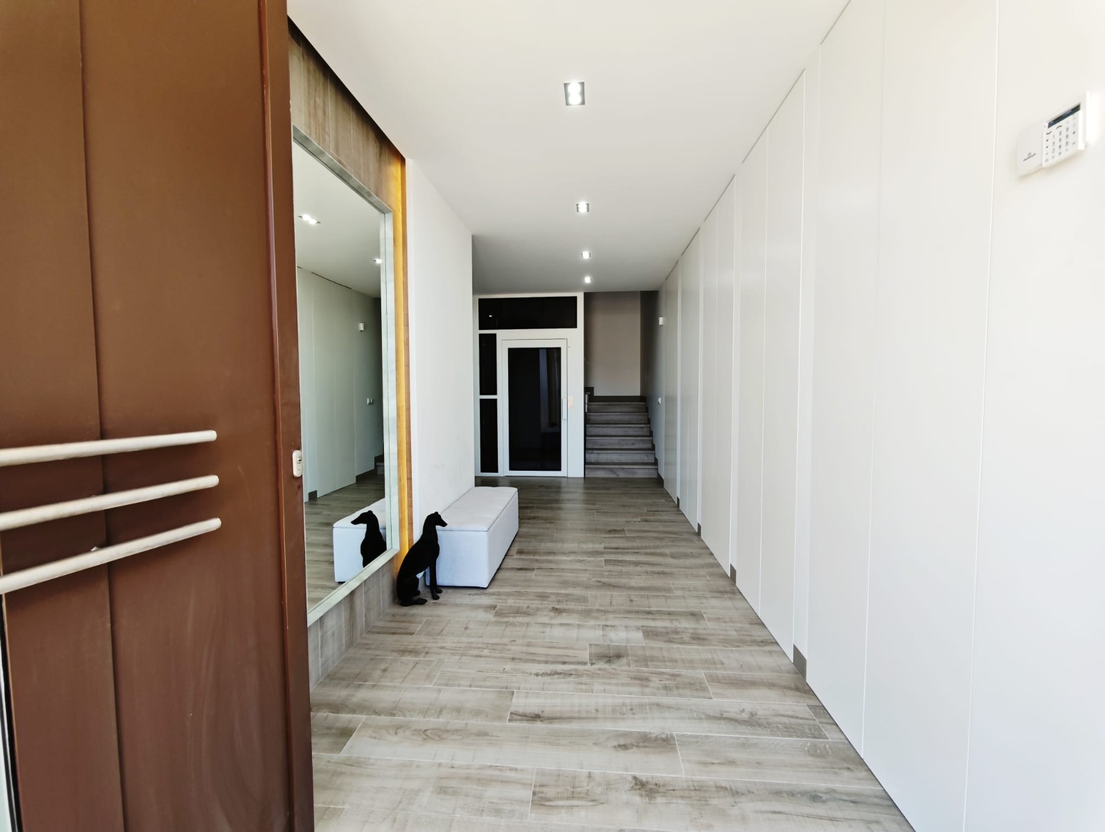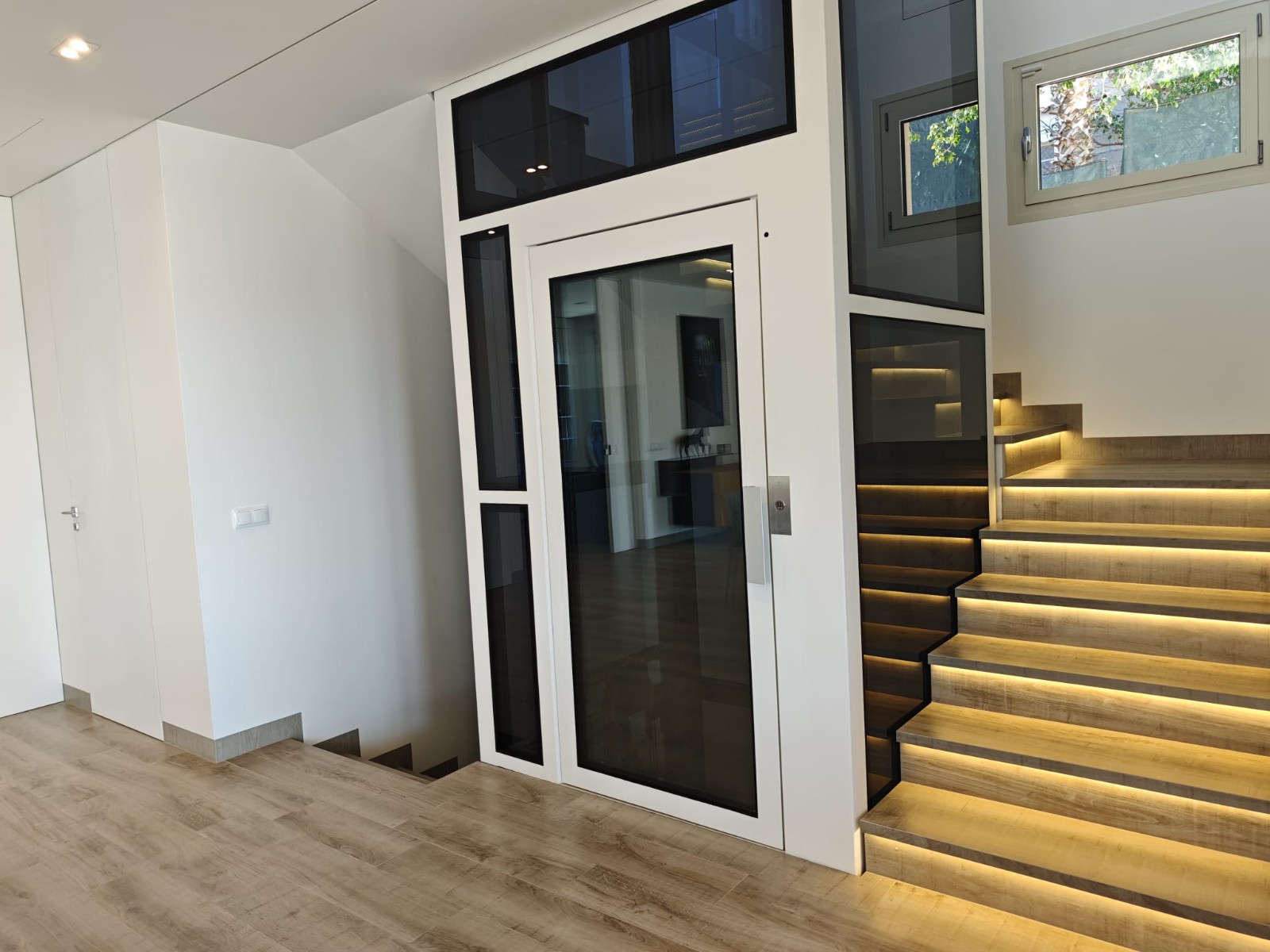 This modern villa is equipped with underfloor heating, air conditioning and solar panels, ensuring both comfort and energy efficiency throughout the year. The lift connecting all three floors adds convenience and accessibility to the property.