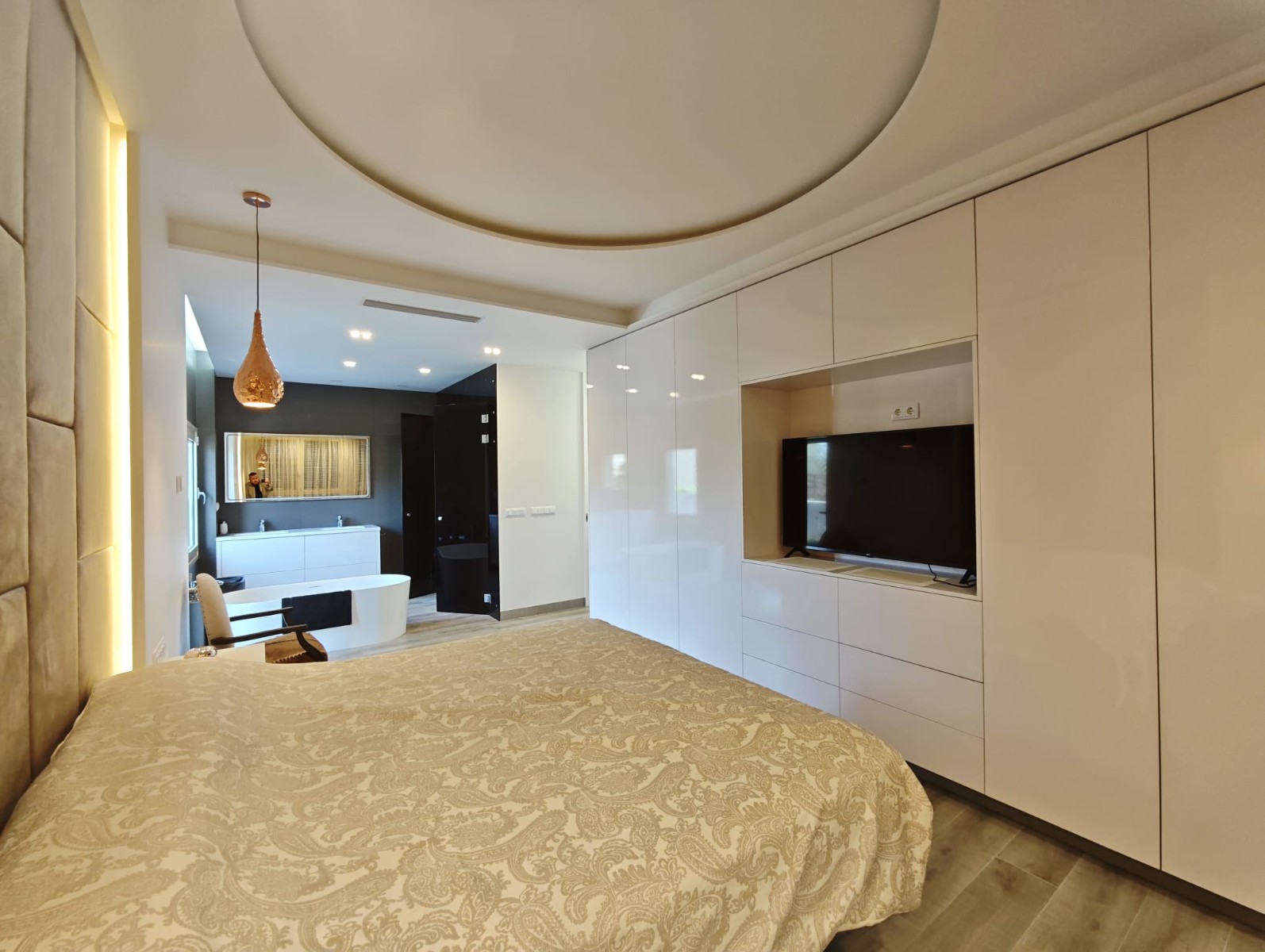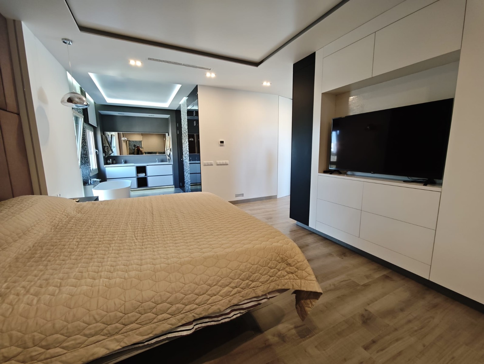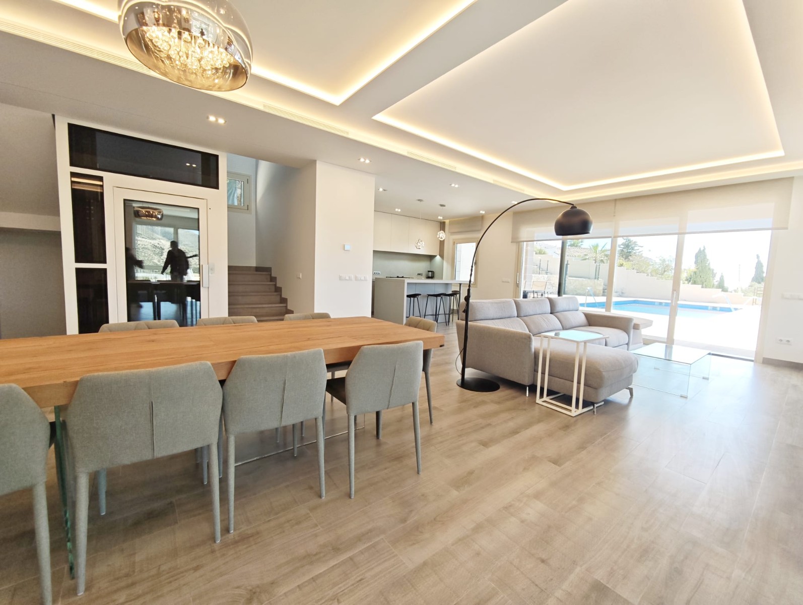 Designed with comfort and elegance in mind, the villa is distributed over three floors, all conveniently connected by a private lift. The interior spaces are bright and spacious, with large windows that allow natural light to flow throughout the home while framing the views of the Mediterranean landscape.