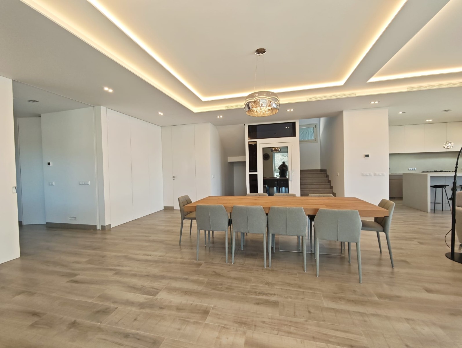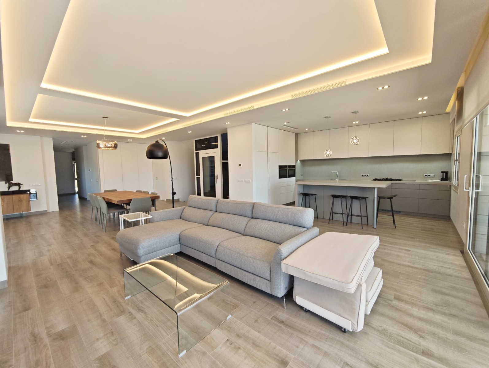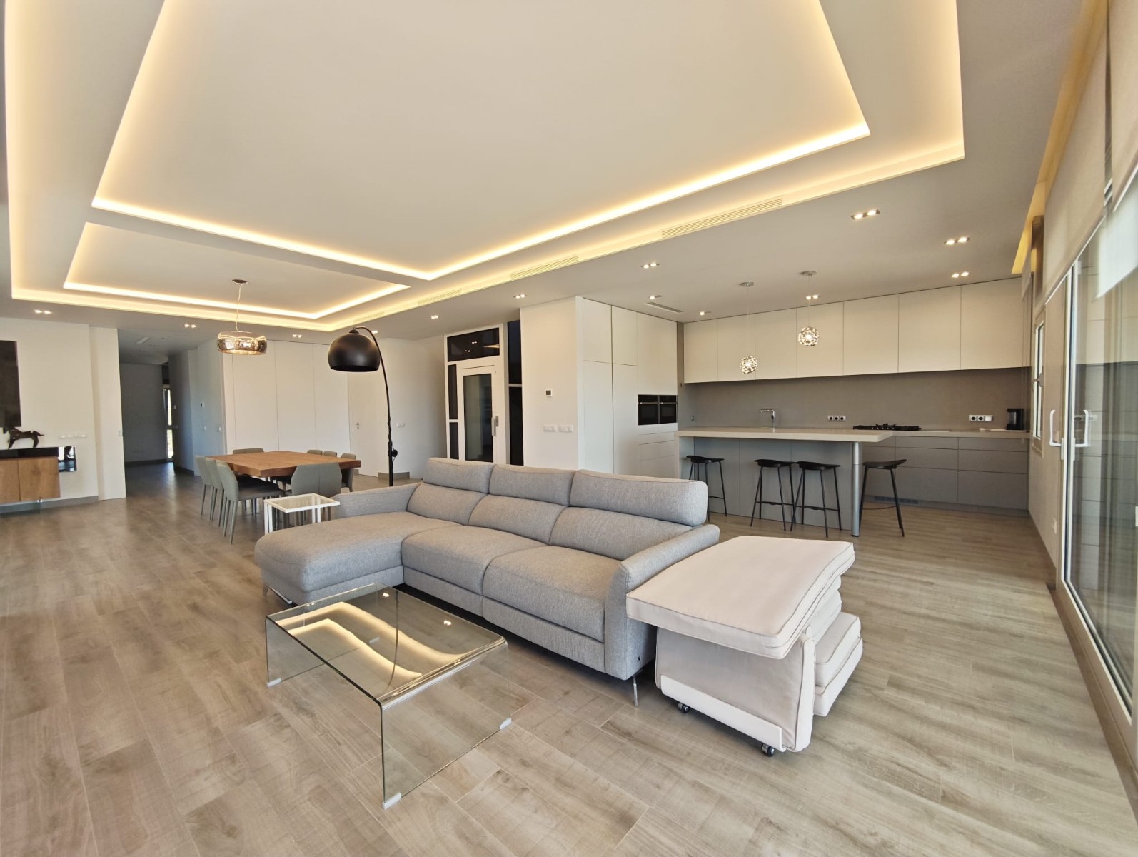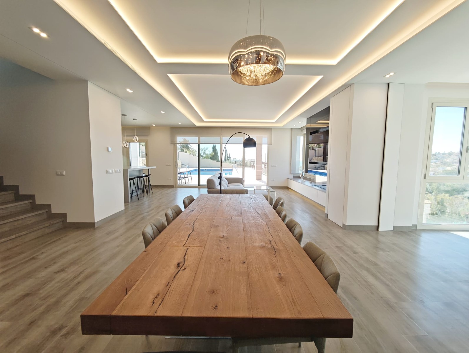 The main living areas feature a large open space designed for modern living and entertaining. The living and dining area connect naturally with the kitchen and outdoor spaces, creating a comfortable and social environment. High-quality finishes and modern architecture give the villa a sophisticated yet welcoming atmosphere.