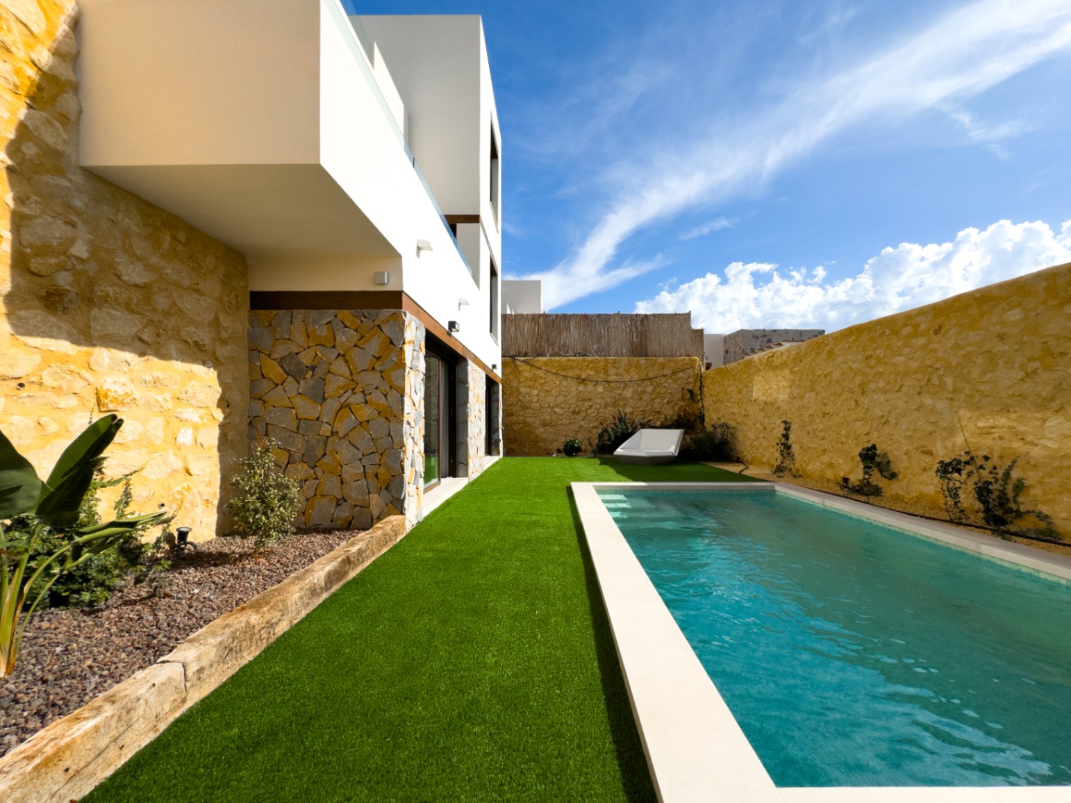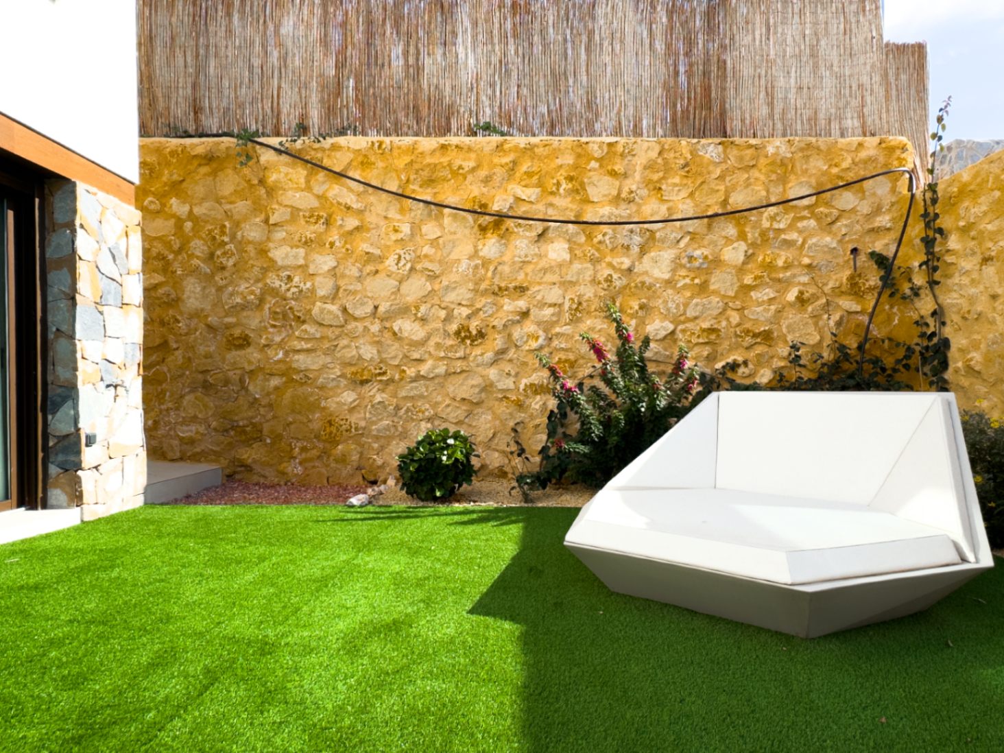 Modern south-facing villa in Finestrat, built in 2024 and offering panoramic views of the golf course and the Mediterranean Sea. The property features 3 bedrooms, 2 bathrooms, an open-plan living and dining area, and a fully equipped kitchen. The outdoor area includes a private pool, sun terrace, and easy-maintenance garden. A spacious underbuild with natural light provides flexible options for additional living space, a gym, or a guest apartment. Located in a quiet residential area, just minutes from golf, beaches, and local amenities — ideal for modern living on the Costa Blanca.