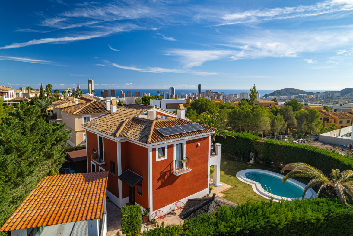 We are pleased to present this beautifully renovated Mediterraneanstyle detached villa, completed in 2024, located in the peaceful and scenic Sierra Cortina area of Finestrat. The property has a total built area of 225m² on a generous 655m² plot and offers four spacious bedrooms and four modern bathrooms, providing plenty of room for comfortable family living.