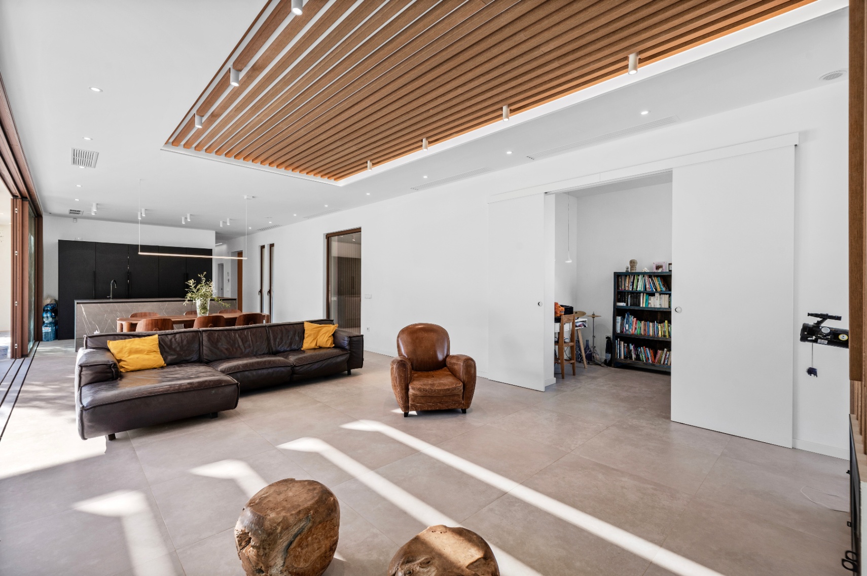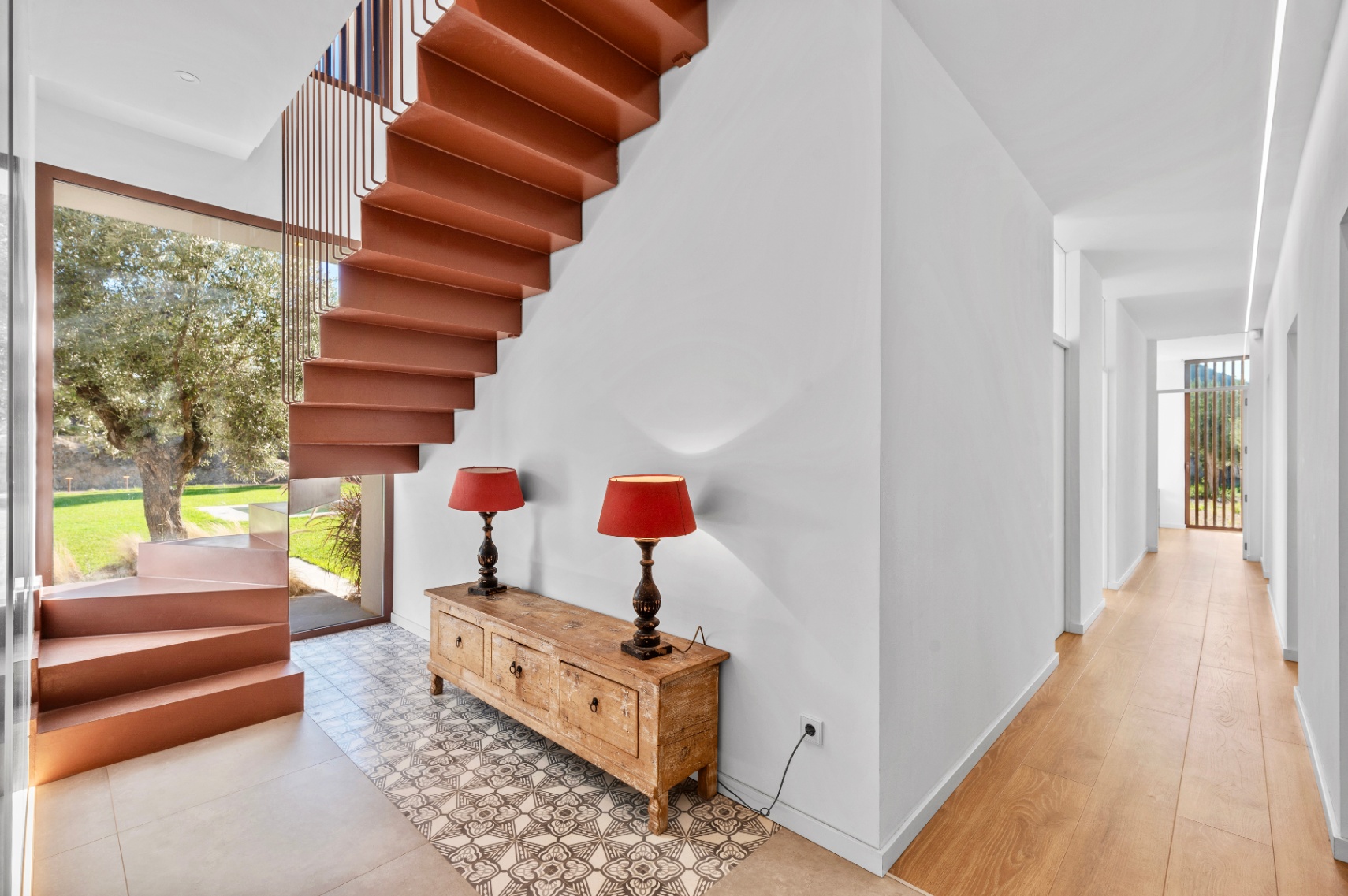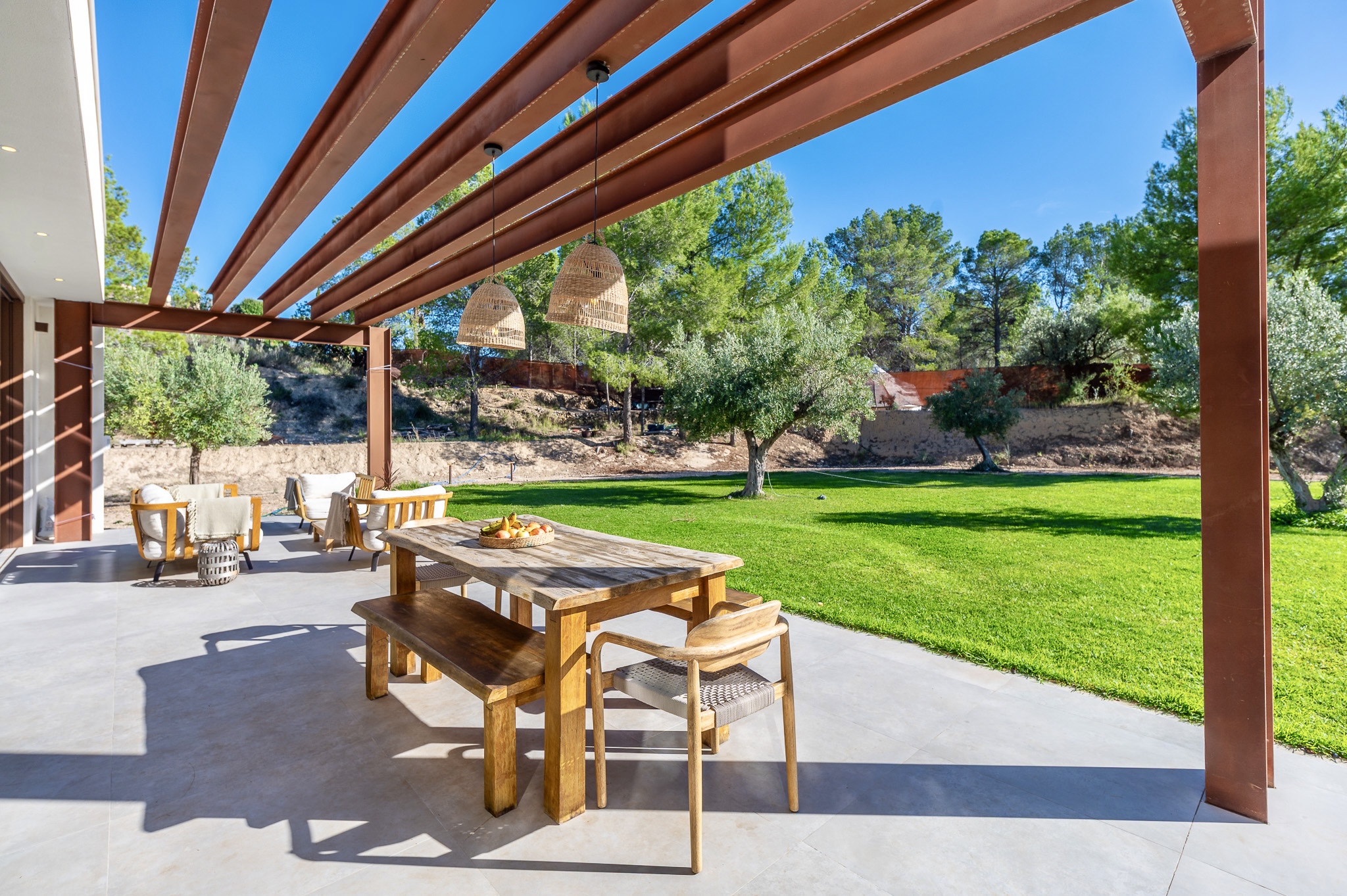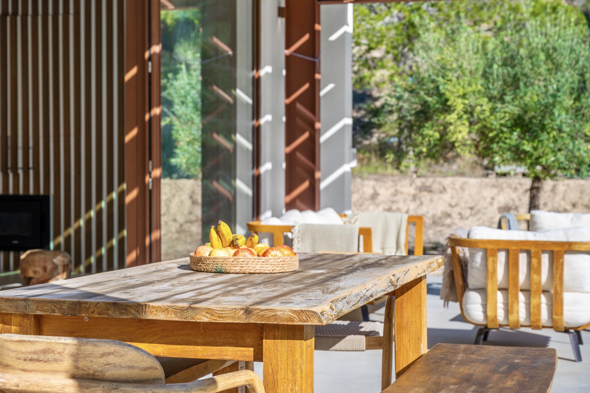 Villa offers four bedrooms and three bathrooms, all designed with comfort and modern functionality in mind. The bright, spacious interior is enhanced by large panoramic windows, creating a seamless connection between indoor and outdoor living. The Santos kitchen includes an island with full storage, high-end appliances, a carbon-filter range hood, and a Liebherr fridge-freezer. Bathrooms are equipped with stainless steel thermostatic taps and anti-fog LED mirrors.