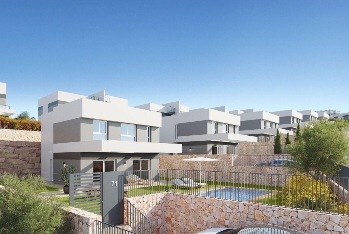 This contemporary villa in Finestrat, set for completion in 2025, offers a perfect balance of modern design and Mediterranean living. Situated on a 396.84 m² plot, the property features 157.71 m² of constructed area across two floors, with a total of 129.60 m² of usable space and a 28.23 m² terrace that benefits from excellent southfacing orientation.