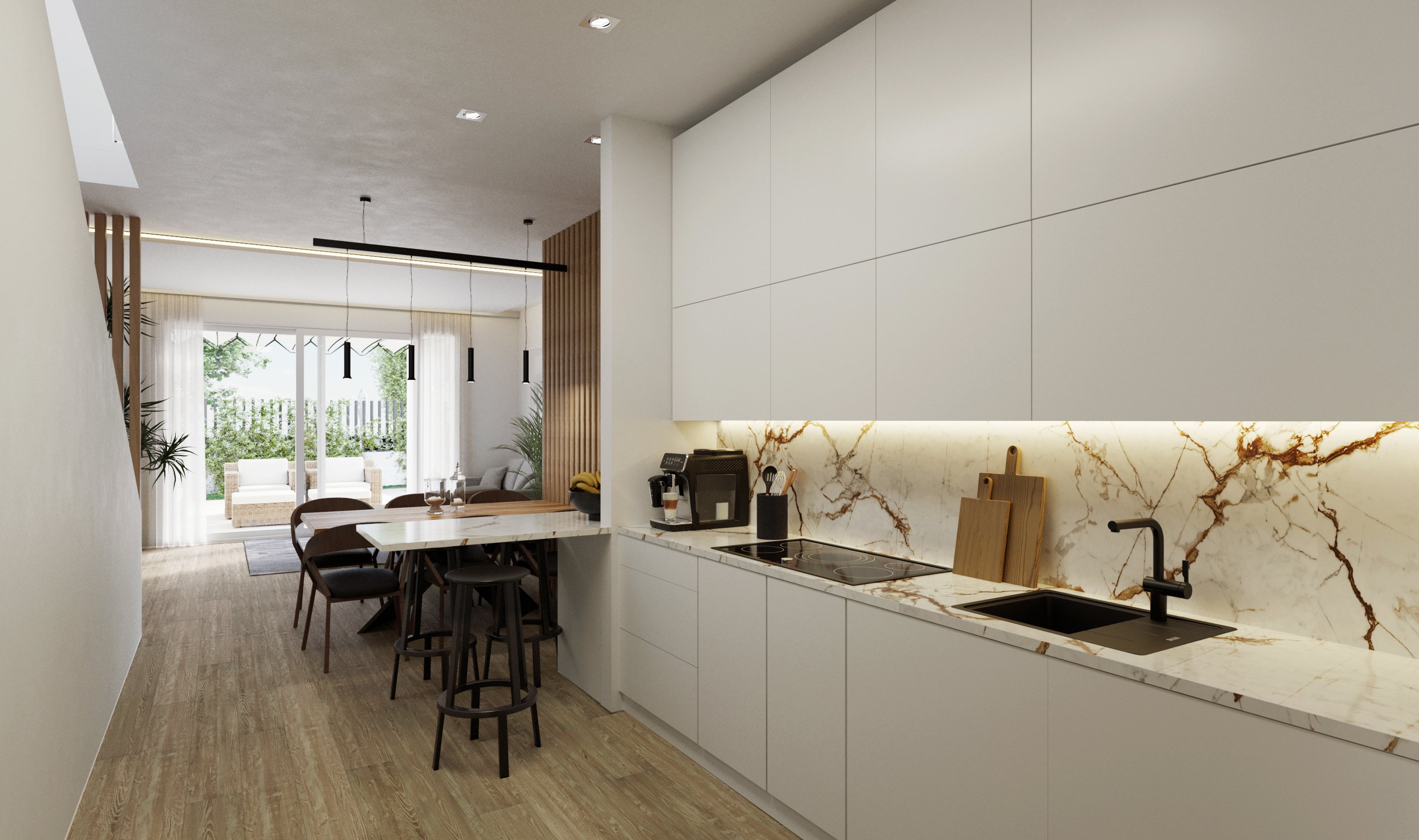 This price includes a number of outstanding features, such as a private swimming pool where you can cool off and enjoy the Mediterranean climate, a barbecue to share unforgettable moments with family and friends, and a basement that offers additional space to adapt to your personal needs. In terms of sustainability, our villas are designed to minimise their impact on the environment. We have integrated energy efficiency systems and use eco-friendly materials in the construction. This not only allows you to enjoy a more environmentally friendly home, but you can also save on energy costs in the long run.