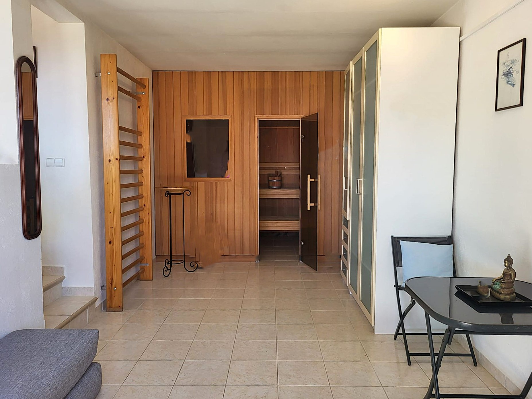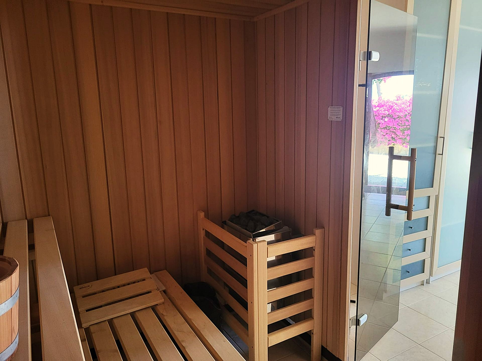 The villa's new double-glazed doors and windows, complete with mosquito nets, enhance the home's security and comfort. Step outside to discover a large, inviting pool surrounded by four expansive terraces and meticulously landscaped gardens, creating a private oasis for relaxation and leisure. A luxurious jacuzzi and rejuvenating sauna offer a spa-like experience at your doorstep, while an outdoor bathroom with a shower provides convenient post-swim refreshment.