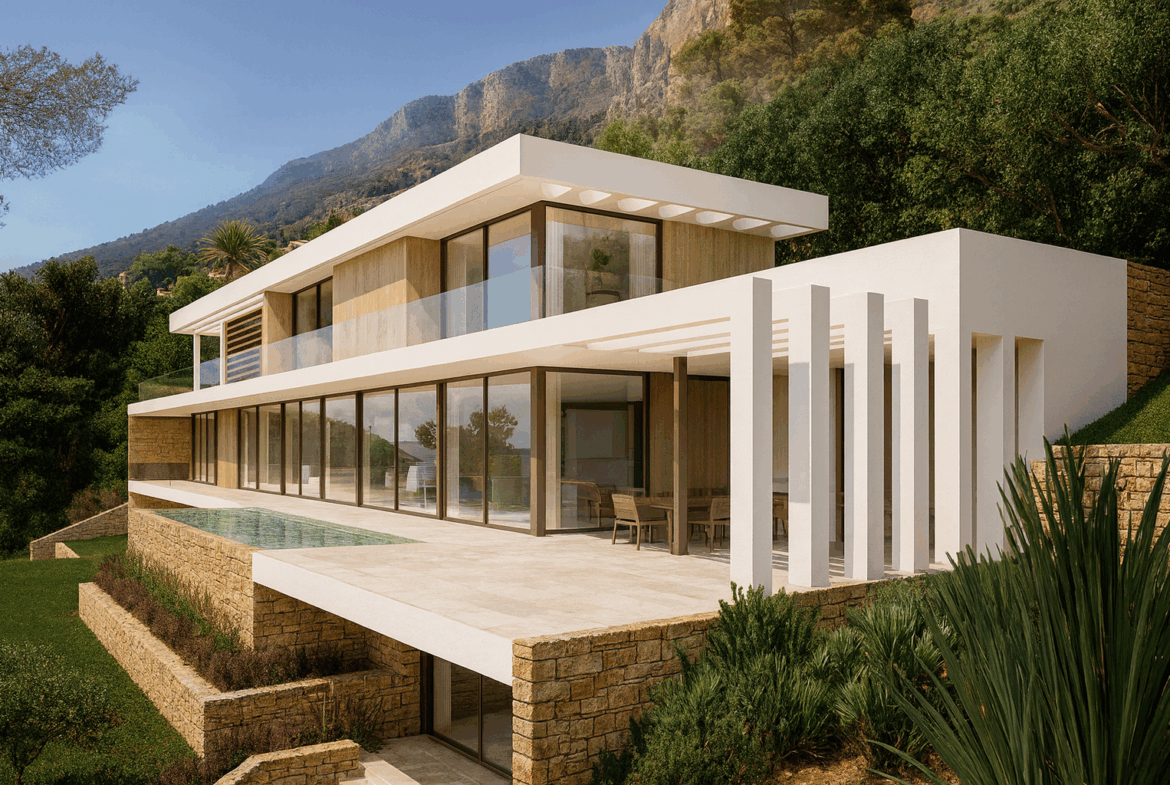 Exclusive InmoVillasJávea Project: New-Build Villa in Montgó We are pleased to present a unique contemporary villa, an exclusive project by InmoVillasJávea, carefully designed to blend harmoniously with the stunning natural surroundings at the foothills of the Montgó, next to the Natural Park and the prestigious La Sella Golf Club. This bright south-facing property stands out for its breathtaking panoramic views of the valley, spacious layout, elegance, and the possibility to customize every detail to suit your tastes and needs. Currently in the project phase, this villa allows the future owner to choose from a wide range of finishes, layouts, and fittings to create a fully tailor-made residence. Set on a 1,675 m² plot, the villa is distributed across three levels connected by an elevator and several staircases, both interior and exterior. The total built area reaches nearly 600 m², complemented by 476 m² of terraces and porches, perfectly oriented to enjoy the Mediterranean climate all year round. The villa has been conceived to offer maximum comfort and functionality, and includes: Indoor and outdoor kitchens with barbecue area Spacious pantry 5 double bedrooms with fitted wardrobes or walk-in closets (with the possibility of expanding up to 8 bedrooms) 8 full bathrooms Two large living rooms Covered porches and open terraces Pergola Designer swimming pool with integrated jacuzzi Wine cellar Games room Gym Laundry rooms Elevator Customizable landscaped gardens And, of course, unrivalled panoramic views of the valley and Montgó The project is complemented by bespoke landscaping for the garden, which can be adapted to the buyer’s preferences, creating an outdoor space in perfect harmony with the natural environment surrounding the property. This villa has been conceived with pure architectural lines, using high-end materials, state-of-the-art installations, and exceptional quality standards that guarantee maximum comfort, energy efficiency, and sustainability. An exclusive opportunity from InmoVillasJávea to build your ideal home in one of the most privileged areas of the Costa Blanca. Contact us today to discover all the customization options available in this project and let us guide you in creating the home of your dreams.