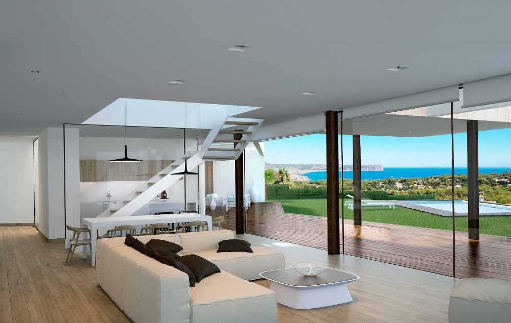 SPECTACULAR JÁVEA AND SEA VIEWS Its studied design of three floors and differentiated in two wings is perfect for the creation of day and night spaces. On the ground floor there is the day wing with a large living-dining room and a fully equipped kitchen, and the night wing with three double bedrooms with en-suite bathrooms. On the upper floor we find the master bedroom, en suite and with a large dressing room, which also has the best views of the whole house. The basement has a multipurpose room where you can find a cinema, a gym or a wine cellar. Its magnificent porch has views of the garden, the swimming pool and the sea, to relax with all the comforts and look at the confines of the Mediterranean. In addition, the entire villa has luxury qualities and the latest technology: underfloor heating, home automation system, etc. FOR MORE INFORMATION AND FLOOR PLANS PLEASE CONTACT US