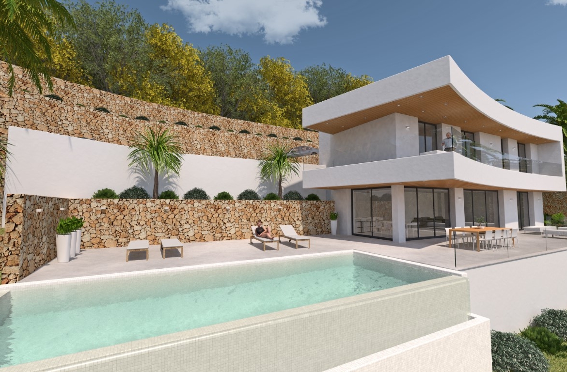 Newly built villa with sea views for sale in Javea, oriented to the south and located in a quiet location. The villa has on the ground floor a spacious living room with a fully equipped open kitchen, from the living room you can access the terrace, pool and outdoor kitchen through the large sliding windows. Furthermore, on this level there is another double bedroom with en suite bathroom and with access to the terrace. On the second floor there are 3 more double bedrooms all with en suite bathrooms and access to a terrace. Outside in the low maintenance garden there is an infinity pool of 4x10m and a terrace of 140m2.