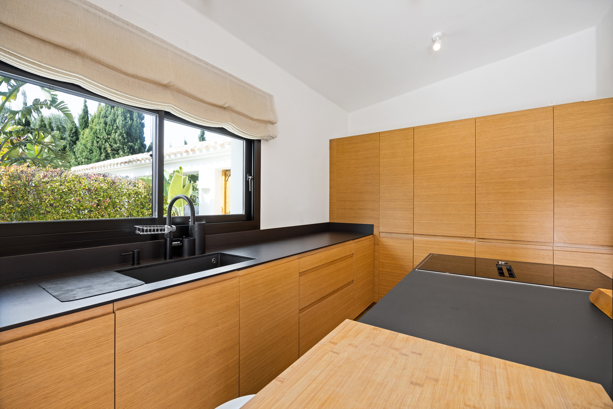 The main residence was completely redesigned in 2022 in a modern Mediterranean concept by Jessica Bataille Interior Design, with a focus on natural materials, architectural luminosity, and a seamless transition between indoor and outdoor living. The property is all on one level and features three bedrooms, three bathrooms, a bright living space, a fully equipped kitchen and direct access to terraces and garden.