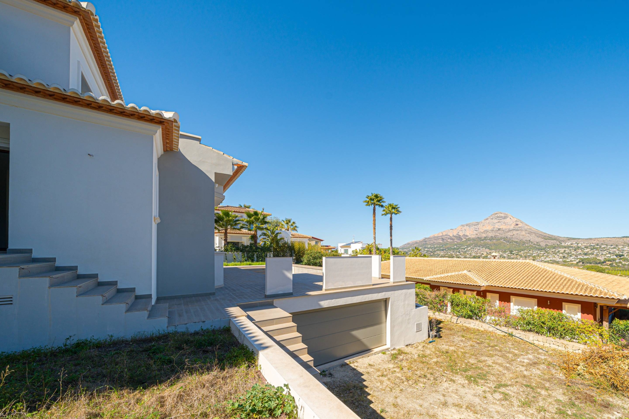 Located in a modern and picturesque urbanization, this villa offers stunning views of the Javea valley, being a peaceful retreat with close access to pristine beaches and essential services.~~Spread over four floors, the property is ideal for car lovers, with a large garage on the lower levels, capable of accommodating at least four vehicles. It also includes a workshop, gym, laundry, possible cinema, guest bedroom, lounge and bathroom, providing ample spaces for relaxation and entertaining.~~On the upper floors, you will find three bedrooms and a spacious living room that connects to a terrace overlooking the spectacular swimming pool. This property stands out for its fusion of indoor and outdoor living, perfect for both intimate gatherings and large events.~~Although the villa is almost finished, finishes such as bathrooms, kitchens and landscaping can still be customized, allowing it to be tailored to your unique style. It is being sold at a reduced price, excluding the cost of completion.~~Jávea, with its fantastic climate and excellent gastronomy, offers a quiet life but close to Alicante and Valencia, making it an attractive option for international buyers.