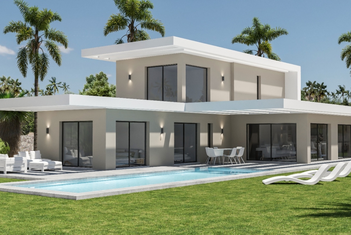 Villa Carisa is a bright twostory villa located in a highquality residential area of Jávea / Xàbia, just 8 minutes from the sea in one of the most beautiful places on the Spanish coast. The property sits on a 1000 m² plot with a built area of 366 m² and 150 m² of useful living space. Offering southern exposure in the Monte Olimpo urbanization, it provides convenient access to all city amenities. The villa features three bedrooms and two modern bathrooms. On the main level, there is a spacious living room, dining room, and openconcept kitchen, along with two bedrooms and a bathroom. Large windows ensure the space is bright and airy, with views of the sun terrace, garden, and swimming pool. Upstairs, the master bedroom includes an ensuite bathroom and private terrace. Villa Carisa is built with quality construction and attention to detail, including elegant finishes, fitted wardrobes, a fully equipped kitchen, terraces, gardens, and a swimming pool. The home is designed for easy maintenance and will be delivered fully finished and ready to use. It has air conditioning with centralized climate control, parking for two cars, and offers stunning sea and mountain views. The property faces northwest and is set across two floors.