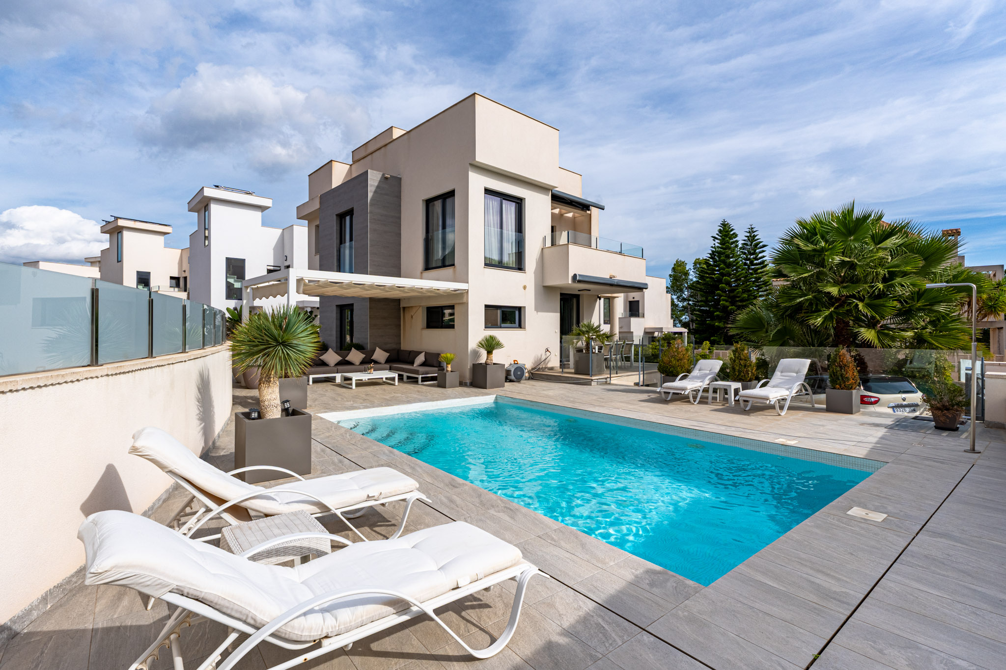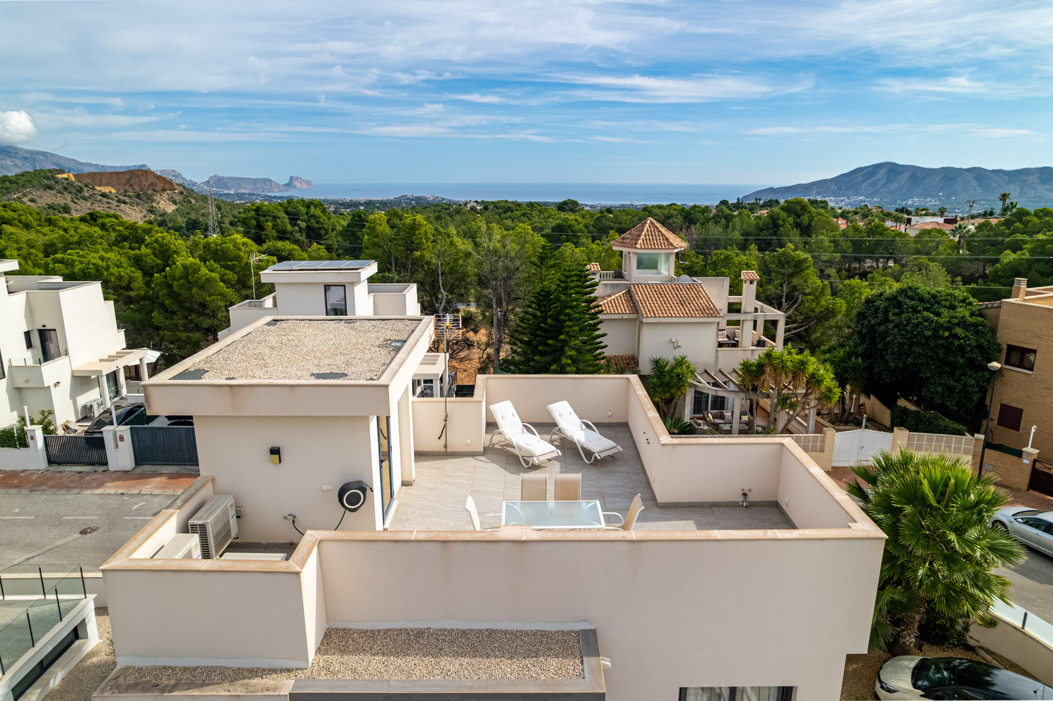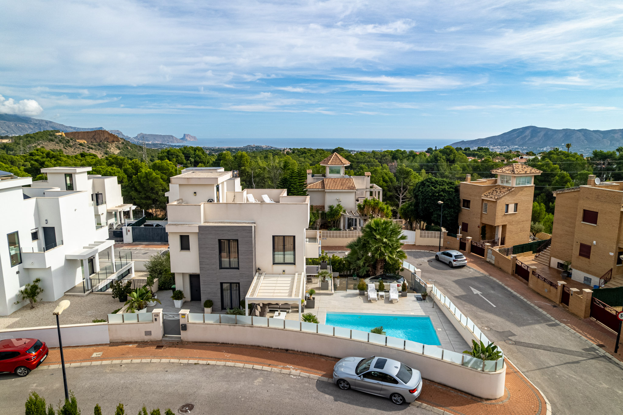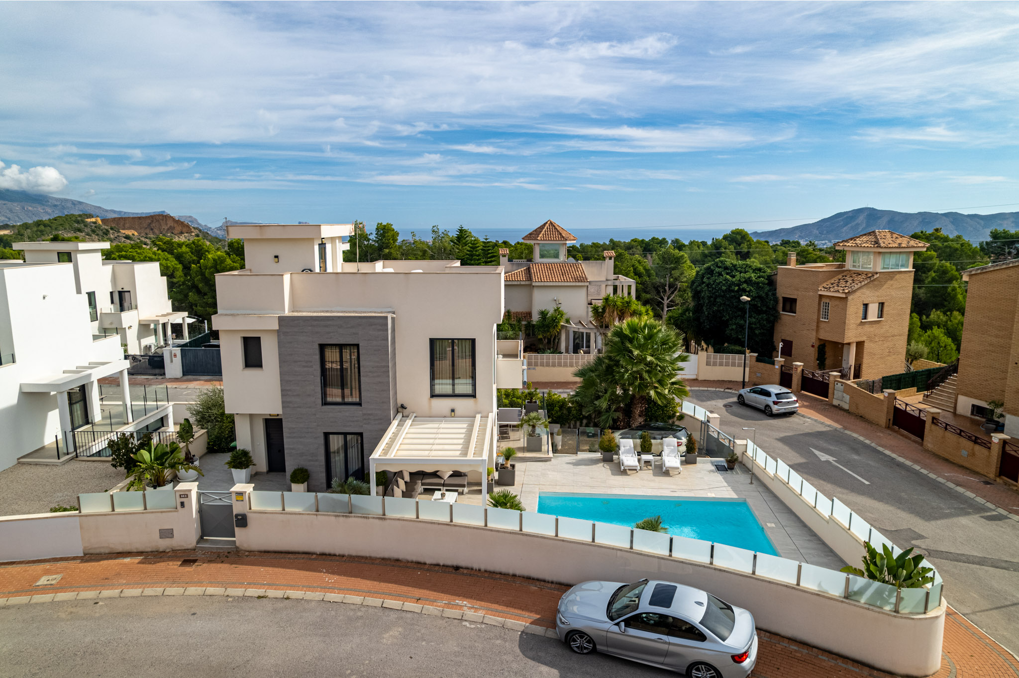 Discover the essence of modern Mediterranean living in this elegant villa, situated in the prestigious Coloma neighbourhood of La Nucía. Completed in 2019, this south-facing property combines contemporary architecture with high-quality finishes and enjoys beautiful sea, mountain, and city views.