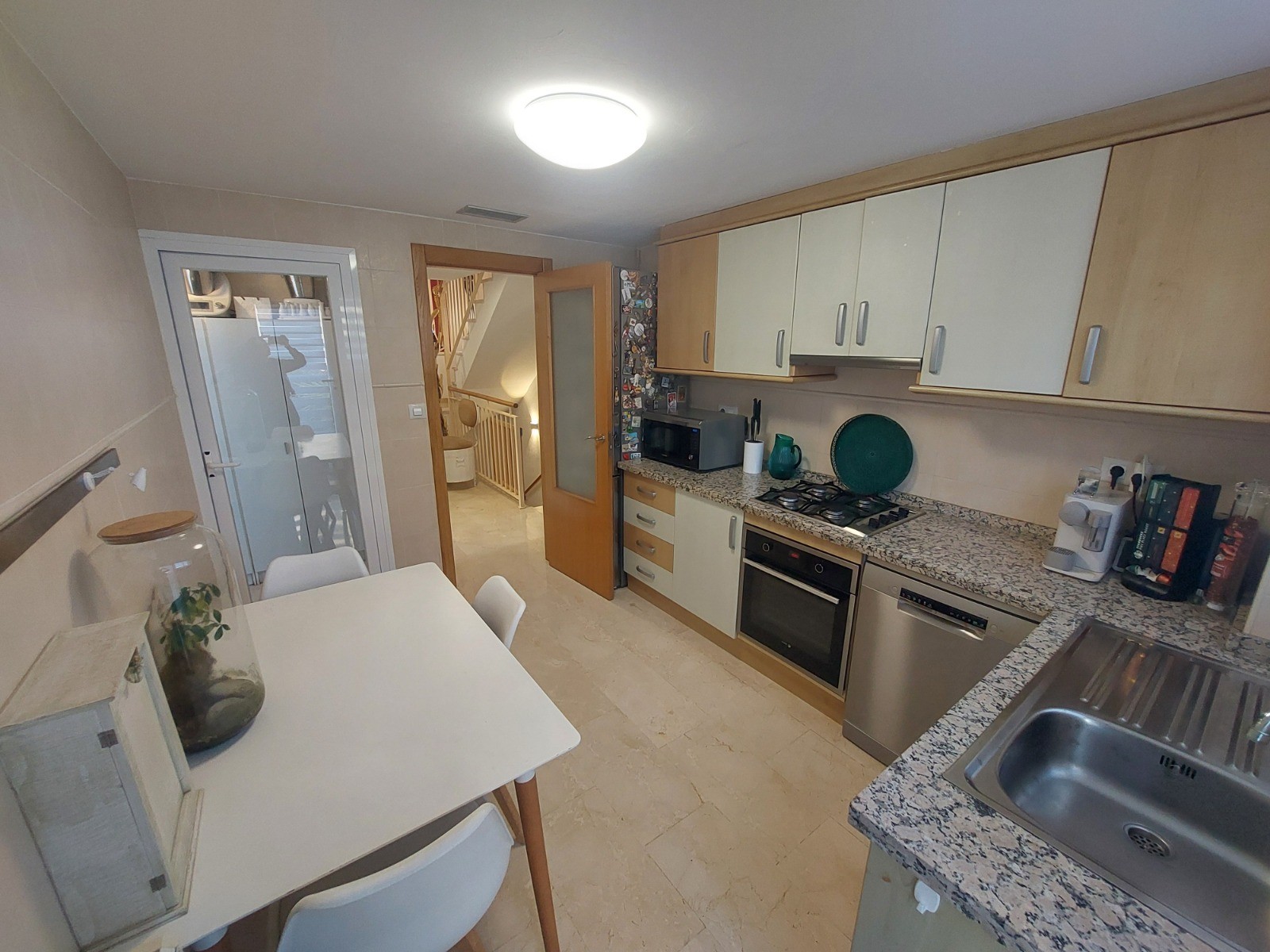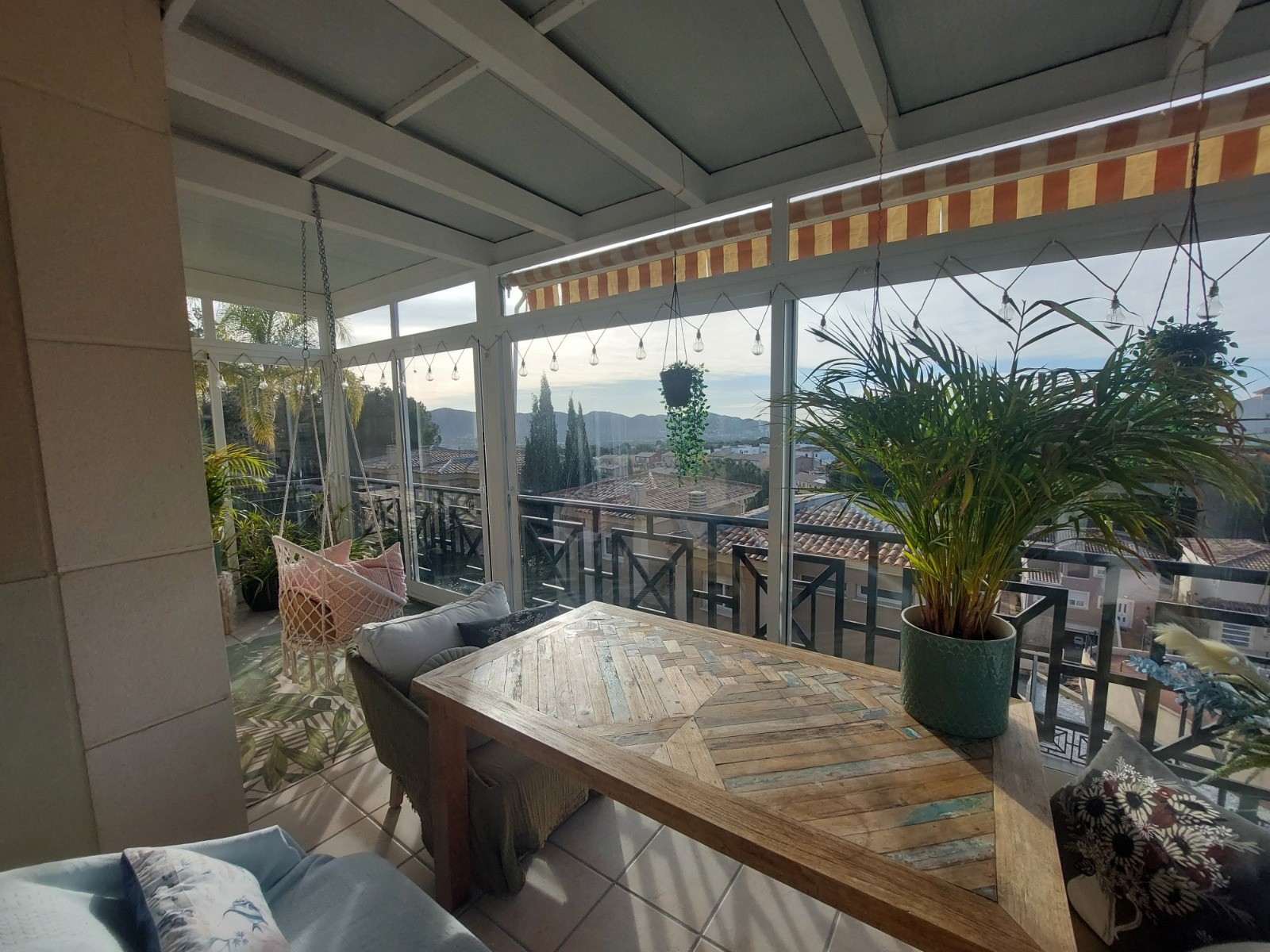 Upon entering the main floor, you are welcomed into a bright and spacious living and dining area filled with natural light. This space flows seamlessly into a beautifully enclosed former terrace, now transformed into an additional living area that is perfect for relaxing or entertaining while enjoying panoramic views of the surrounding landscape.