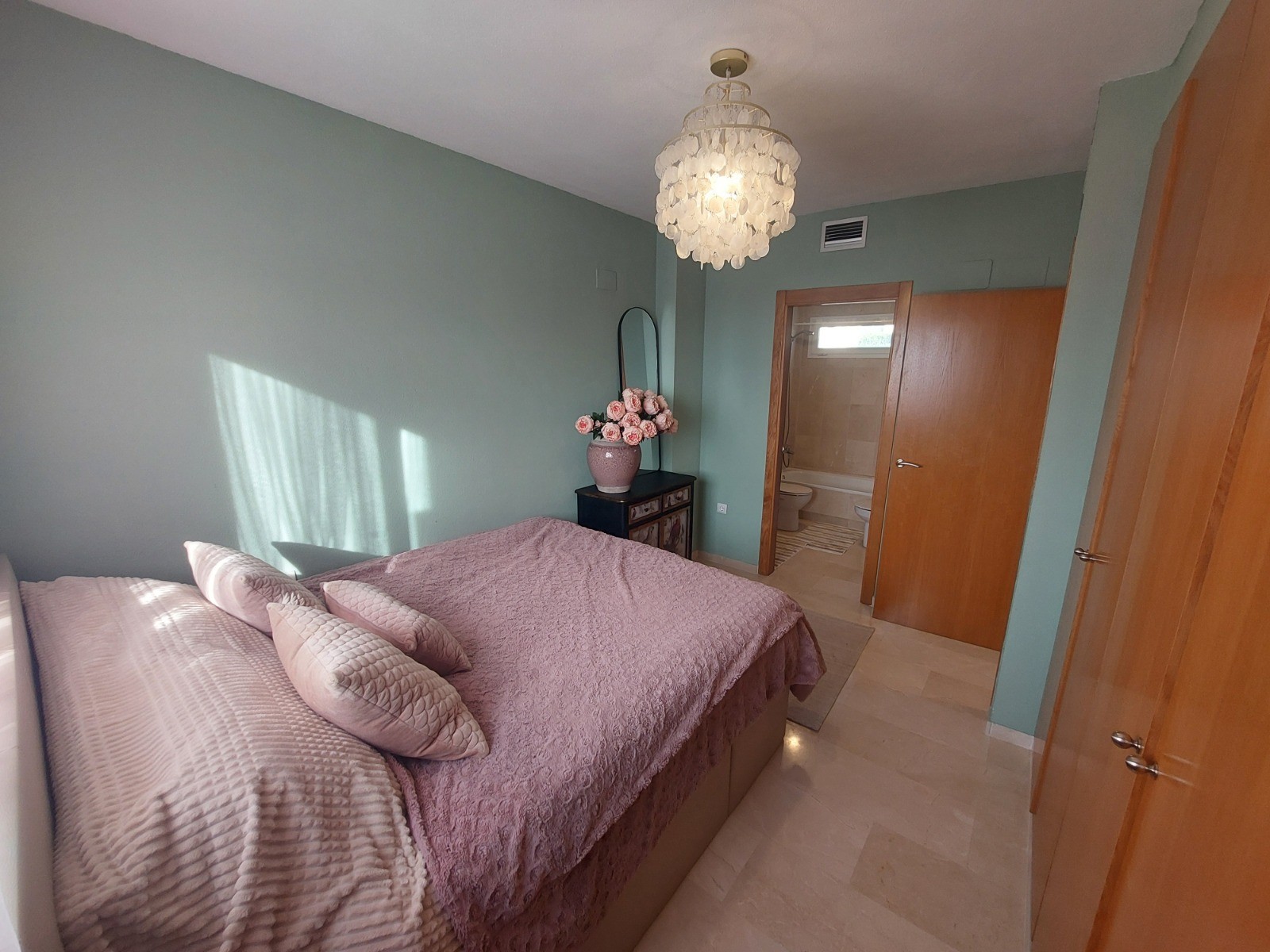 The upper floor is dedicated to the main sleeping quarters and features three spacious bedrooms, all fitted with built-in wardrobes. A full family bathroom with a window serves this floor, ensuring natural light and ventilation. The master bedroom stands out with its extra built-in storage and private en-suite bathroom, also benefiting from an exterior window that enhances brightness and airflow.
