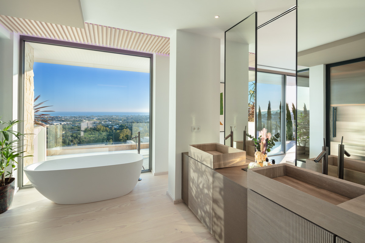 Villa for sale in , Benahavis with 5 bedrooms, 5 bathrooms, 2 toilets and with orientation south, with private swimming pool, private garage and private garden. Regarding property dimensions, it has 787 m² built and 830 m² plot. Has the following facilities amenities near, transport near, air conditioning, fully fitted kitchen, jacuzzi, sauna, basement, gym, brand new, private terrace, kitchen equipped, sea view, mountain view, heated pool, automatic irrigation system, laundry room, gated community, pool view, panoramic view, cinema room, underfloor heating (bathrooms), close to sea / beach, close to golf, open plan kitchen and close to town.
