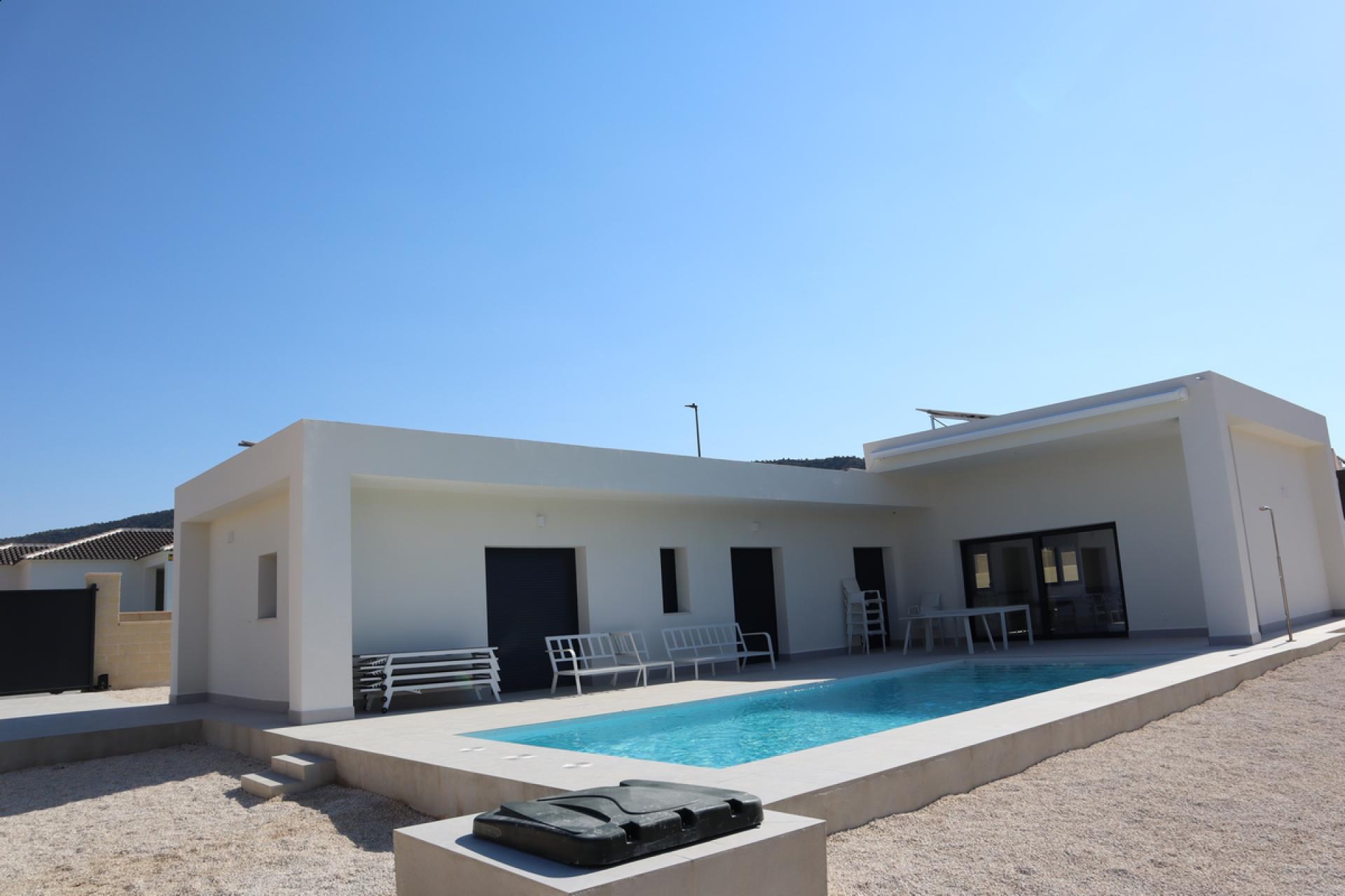We are delighted to present this off-plan villa, thoughtfully designed for comfort and style. The home features a spacious lounge/dining area, a modern kitchen, and a utility room with an electric water heater supplemented by solar panels. There are three bedrooms—two with built-in wardrobes—and two bathrooms, one en-suite. A covered terrace complements the living space, and an 8x4 m swimming pool completes the property.