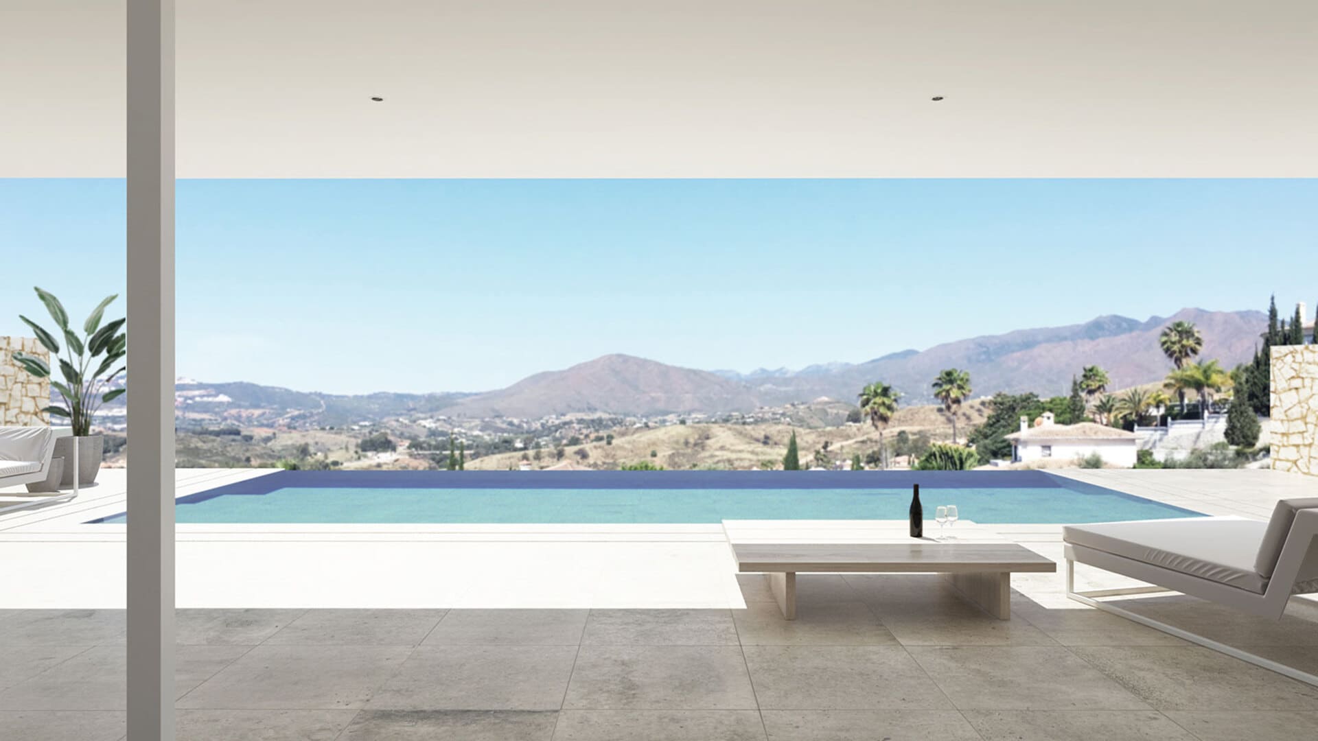 The exterior design of this modern villa stands out for its elegant simplicity and functionality, making the most of its enviable location in front of the Mijas golf course. The property boasts a large private garden, where the swimming pool blends perfectly with the natural surroundings, offering panoramic views of the golf course and the town. A spacious outdoor porch complements the living area, ideal for enjoying the Mediterranean climate and hosting al fresco dinners. The rooftop solarium provides an exclusive space to relax, while the design of the grounds ensures privacy and connection with nature.