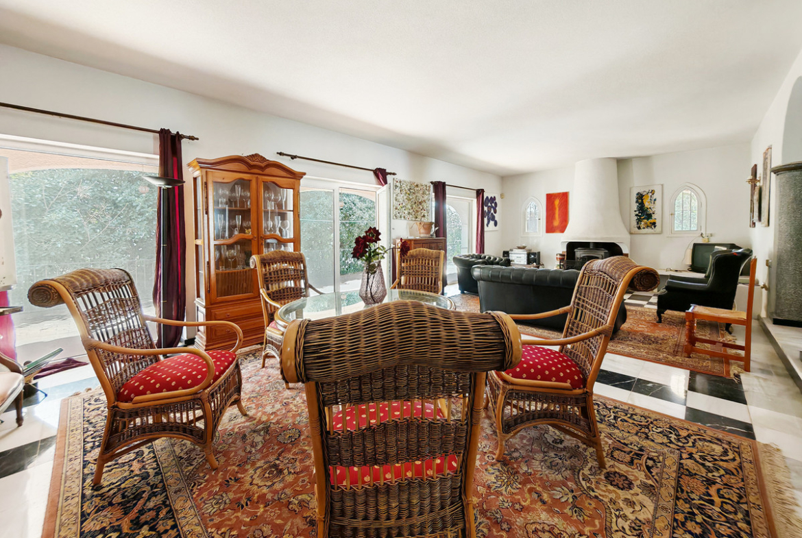 Villa for sale in , Marbella with 5 bedrooms and 5 bathrooms, with private swimming pool, carport garage and private garden. Regarding property dimensions, it has 818 m² built and 2,446 m² plot. Has the following facilities amenities near, transport near, partly furnished, utility room, fireplace, guest room, storage room, dining room, barbeque, guest toilet, kitchen equipped, living room, study room, sea view, mountain view, laundry room, covered terrace, fitted wardrobes, wine cellar, separate dining room, balcony, handicap accessible, renovation needed, close to shops, close to town, close to schools, guest apartment and office room.