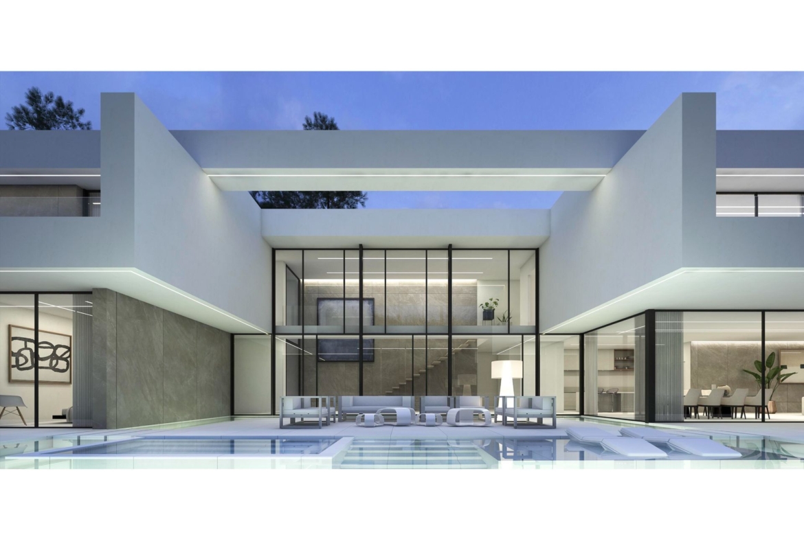 Exclusive and ultra stylish project located within the delightful residential area of Benimeit. Situated on a south facing plot of 5.81m2 m2, with sea views. This stunning property will be distributed on two floors connected by internal stairs and elevator with 619 m2 of construction to include 5 double bedrooms, 5 luxury bathrooms, 1 guest toilet, large open plan living room with high spec designer kitchen, laundry room, private infinity swimming pool, underfloor central heating, ducted air-conditioning and high quality double glazing throughout.