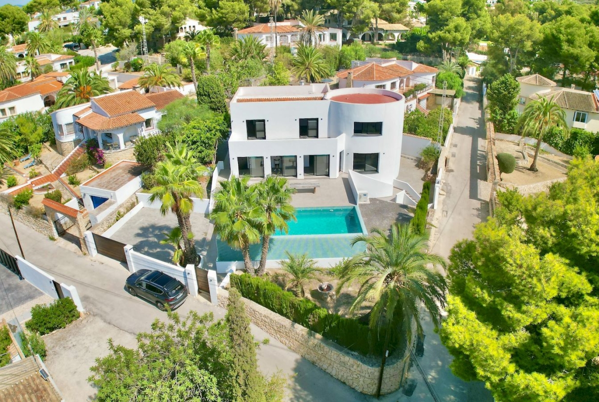 Completely refurbished Villa for Sale, in Portet de Moraira on the Costa Blanca. With a constructed area of 529 m2 and on a plot of 1052 m2, this luxury villa has everything you could wish for in terms of comfort and style. With unobstructed views of the mountains and only 400 meters from the beach. Distributed over 3 floors, the house includes 4 large bedrooms (3 en suite), 4 bathrooms plus a guest toilet. The spacious living and dining areas are elegantly furnished and offer ample space to entertain family and guests. The modern kitchen is fully equipped with high-quality appliances and a breakfast bar. This luxury villa includes three practical storage rooms, underfloor heating and pre-installation for air conditioning to enjoy total comfort all year round. Outside, three large terraces are the perfect place to relax, dine al fresco or enjoy the sunset. The south orientation of the villa ensures abundant light and sun throughout the day, illuminating the interior spaces. Surrounded by a well-kept garden offering tranquillity and privacy, the villa also includes parking for two cars, infinity pool and heated indoor pool. This luxury property combines modern comfort with an unbeatable location close to nature and the sea. Don't miss the opportunity to turn it into your dream home. Contact Our Agents!