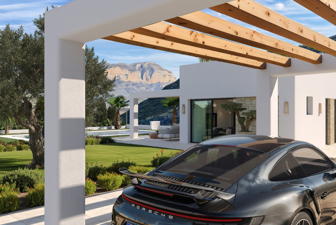VILLA XÚQUER is a luxury home in the Monte Solana residential area with panoramic sea and mountain views. Located on a large private plot with a swimming pool, it is Mediterranean living at its finest. With an innovative design, the living room has a double-height ceiling and a façade with large windows overlooking a breathtaking landscape. Here you have a unique opportunity to enjoy total privacy and tranquillity surrounded by nature. Comprising 4 bedrooms and 4 bathrooms, living/dining room/kitchen, terrace and