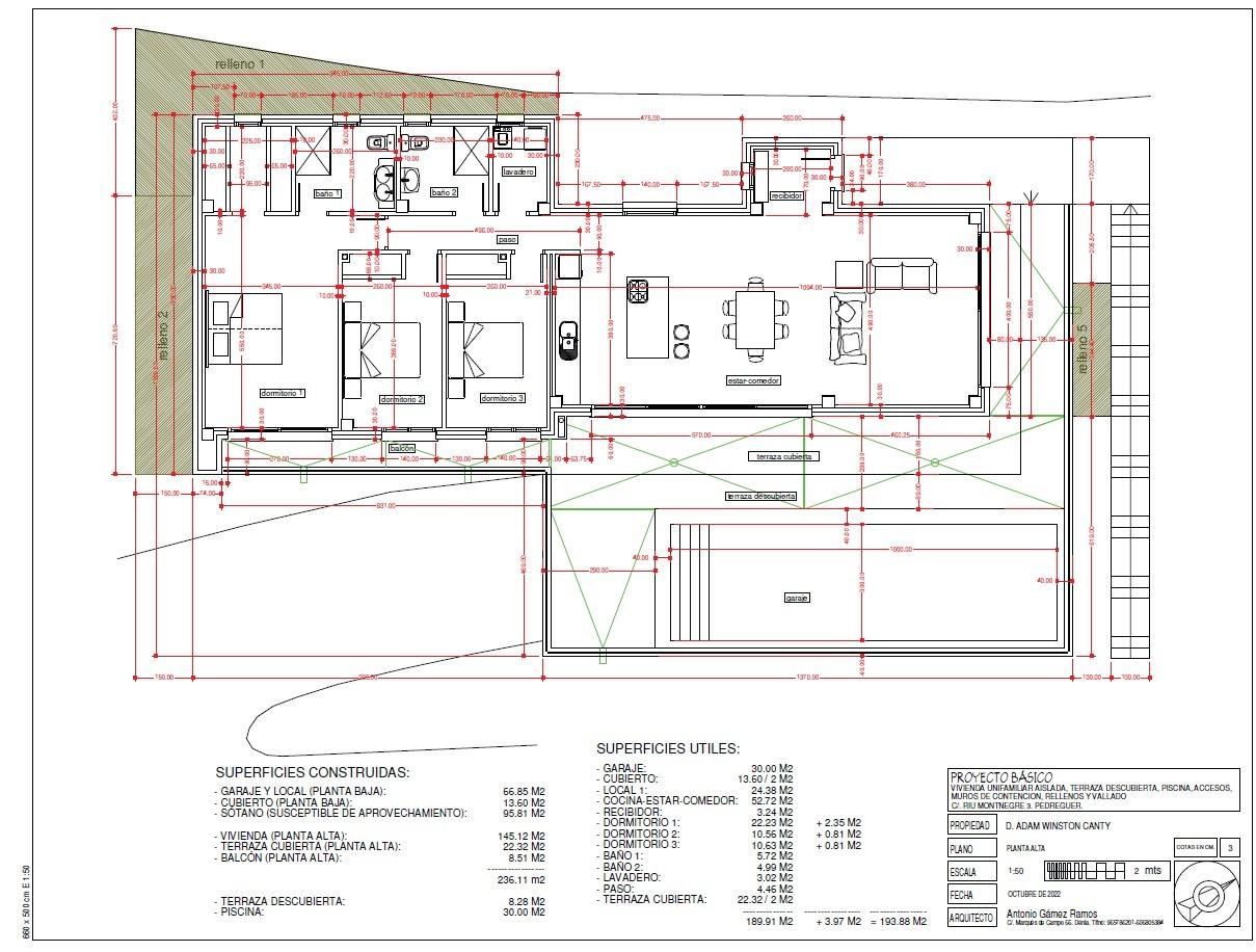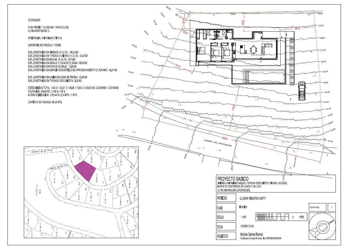Discover this stunning new-build villa in the Ibiza style in Monte Solana, Pedreguer, where tranquillity, space and the Mediterranean lifestyle take centre stage. Set on a generous plot of approximately 1,150 m2, you can enjoy an impressive 180° view over the mountains and towards the sea.~~The villa offers approximately 176 m2 of living space, designed entirely on one level for maximum comfort and a seamless transition between indoors and outdoors. The bright living area with open-plan kitchen forms the heart of the home and opens directly onto the terrace and swimming pool – ideal for relaxing days and cosy moments with family and friends.~~The layout comprises three bedrooms, including a master suite with a dressing room and en-suite bathroom, two further bedrooms, a second bathroom, a guest toilet and a separate laundry room.~~Outside, you will find a stylish terrace with glass balustrades, a private swimming pool of approximately 30 m2 and a sunny pool terrace – perfect for enjoying the Mediterranean climate.~~The property is being built in an elegant Ibiza style with clean lines and natural harmony with the surroundings. In addition, the basement offers potential to create extra living space, a guest accommodation or a relaxation area.~~Construction has already begun, making this a unique opportunity to invest in a modern villa with potential for expansion, situated in a quiet and elevated location, close to amenities and the Costa Blanca coastline.