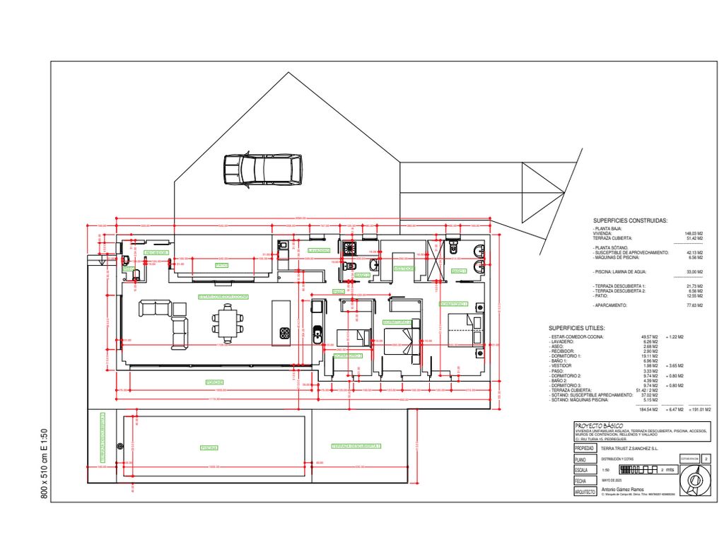 Elegante villa de nueva construcción con vistas al mar en Monte SolanaEn una parcela generosa de aproximadamente 1.000 m² se construye una elegante villa de estilo ibicenco con unos 200 m² de superficie cubierta. La arquitectura moderna se combina con la relajada esencia de la vida mediterránea, creando un lugar que une tranquilidad, confort y elegancia. El diseño de planta abierta con grandes ventanales permite transiciones fluidas entre el interior y el exterior, ofreciendo impresionantes vistas a las verdes colinas circundantes.El exterior cuenta con una piscina de 33 m² con instalaciones técnicas integradas (incluido sistema de filtración de arena y preinstalación para calefacción de la piscina) y una terraza de 40 m², ideal para días soleados y tardes relajadas. Un garaje doble completa la propiedad.La vivienda se construye con estructura de hormigón armado y mampostería de alta calidad, cumpliendo con los estándares actuales de construcción y eficiencia energética. Las paredes exteriores son eficientes energéticamente y las ventanas y puertas de aluminio en color antracita (RAL 7016) con rotura de puente térmico, doble acristalamiento, protección UV y cierre de seguridad múltiple aseguran el máximo confort. El sistema de aire acondicionado central (frío/calor) con conductos integrados en los techos, junto con la tecnología de bomba de calor, garantiza un clima interior agradable. El agua caliente se suministra mediante bomba de calor con depósito.El interior de alta calidad incluye armarios empotrados a medida con sistema “soft-close", puertas interiores de madera maciza blanca, techos suspendidos con huecos integrados para cortinas y una cocina abierta moderna con encimera de granito. Los baños, de diseño moderno, cuentan con duchas amplias y acabados de cerámica de alta calidad en suelos y paredes, reforzando el nivel superior de la vivienda. Un sistema de ventilación bien pensado en cocina y baños asegura la circulación continua del aire, incluso durante la ausencia.Características principales: Parcela aprox. 1.000 m² Aproximadamente 200 m² de superficie cubierta de estilo ibicenco Diseño de planta abierta con grandes ventanales Piscina de 33 m² con preinstalación para calefacción Terraza de piscina aprox. 40 m² Garaje doble Construcción de alta calidad y tecnología eficiente Aire acondicionado central (frío/calor) y bomba de calor Acabados exclusivos y materiales modernos Ubicación tranquila con vistas a las colinas La licencia de construcción ya ha sido otorgada, por lo que la obra puede comenzar de inmediato. Esta villa de nueva construcción combina arquitectura moderna, materiales de alta calidad y un diseño interior cuidadosamente planificado. Con vistas al mar y a las colinas, amplia zona de piscina y espacios interiores bien estructurados, ofrece un nivel de confort excepcional. Un hogar donde la funcionalidad, la calidad y la vida mediterránea relajada se unen perfectamente.