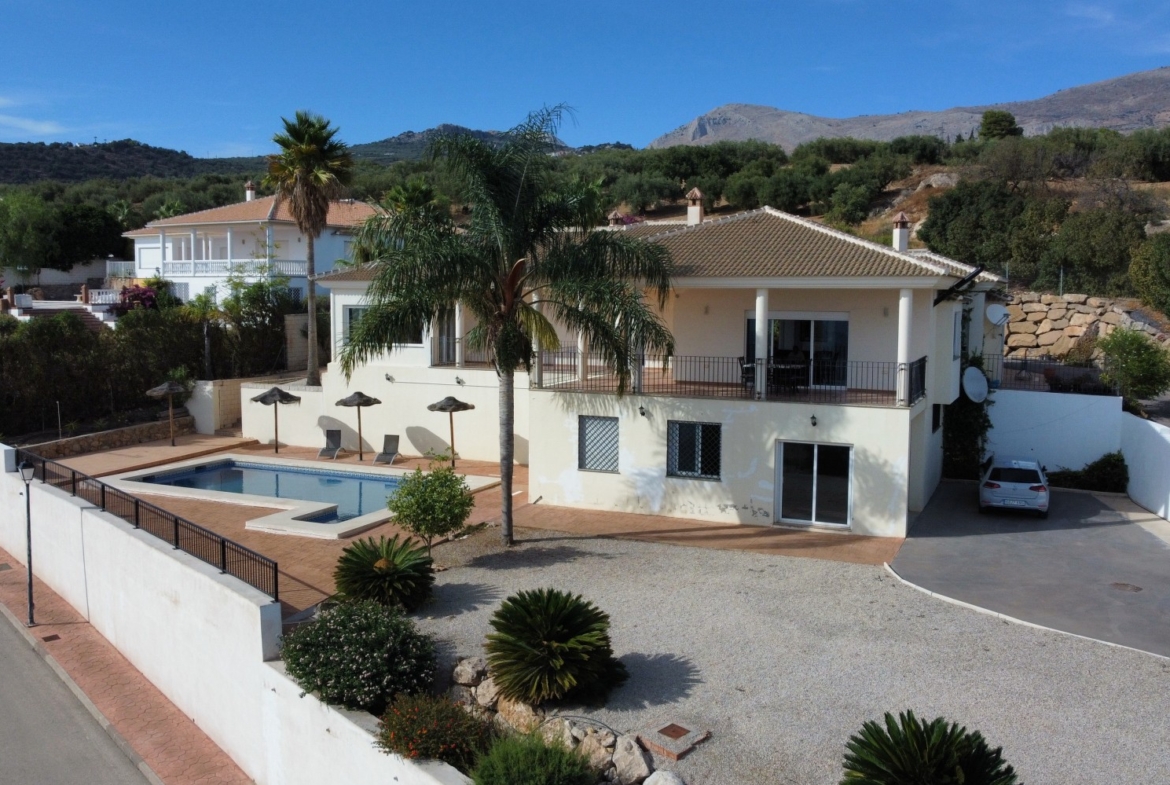 For sale: an impressive villa in Periana with 580 square meters of built space on a 1,800 square meter plot, ideal for those seeking a spacious home with a range of amenities. The villa is spread over 2 floors and features 4 large bedrooms, each with its own en-suite bathroom, ensuring maximum privacy and comfort. All bedrooms are equipped with built-in wardrobes, providing ample storage space. The large living-dining room is perfect for social gatherings, and the modern, fully equipped kitchen combines both style and functionality. The house is also fitted with a built-in sound system, providing luxury and comfort throughout all rooms. One of the villa's key highlights is the large terrace, offering spectacular views of the lake and surrounding mountains, creating the perfect outdoor relaxation space. The property also includes a large pool, ideal for enjoying the warm weather, and a garage with space for several vehicles. Another major advantage of this villa is that it comes with a B&B (Bed and Breakfast) license and a vacation rental license, making it an excellent investment opportunity. The ground floor can also be converted into a separate living unit, offering additional accommodation options. The villa boasts an outdoor kitchen, perfect for preparing meals and hosting barbecues while enjoying the peaceful and private surroundings. This villa is a unique opportunity to acquire a luxury property in Periana, fully equipped with all the necessary amenities and licenses for either private use or as a holiday rental. Dont miss the chance to visit! We are pleased to be able to present this dream property to you soon, either personally or via virtual viewing. Because this world is unique - just like our Axarquía. In Andalusia. On the Costa del Sol. Here, on the sunny side of life...