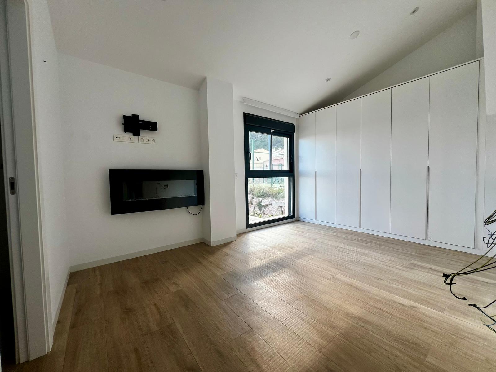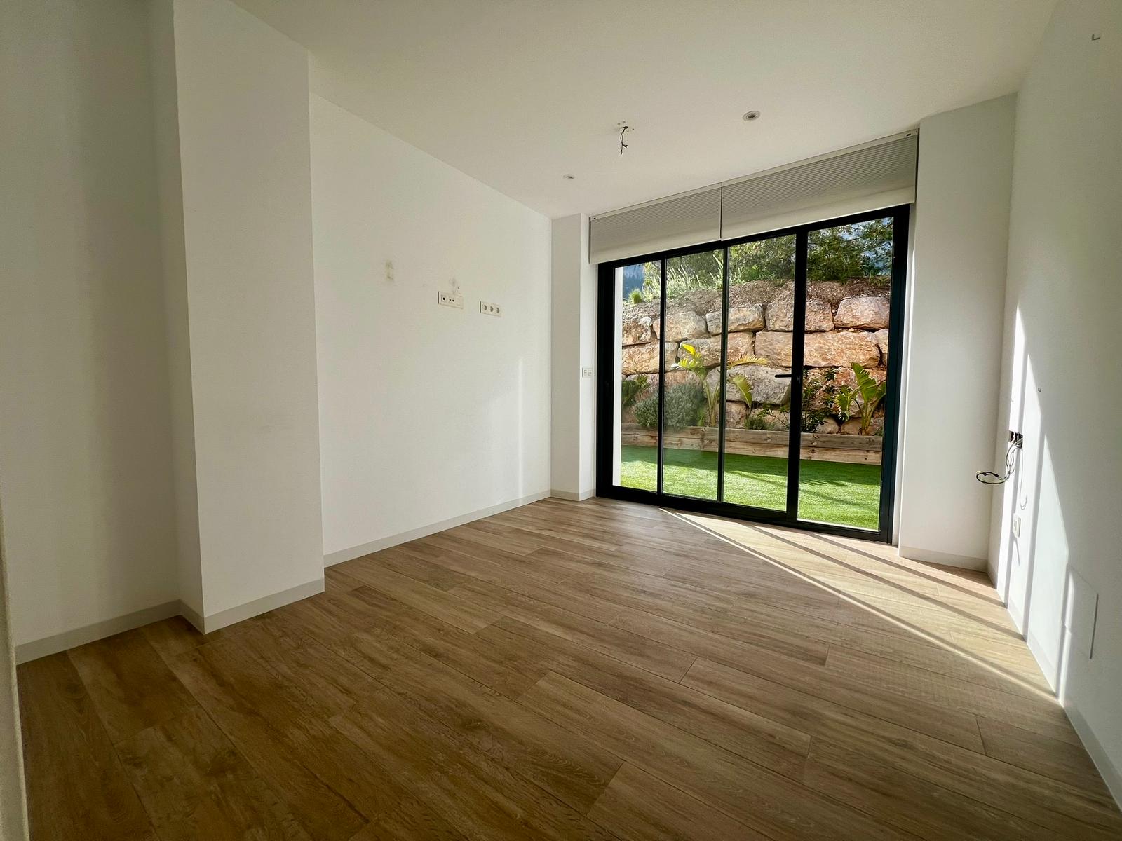 The outdoor space is equally impressive. A private heated swimming pool invites year-round enjoyment, surrounded by sun loungers and landscaped areas offering both sun and shade throughout the day. All of this is framed by stunning views of the 'Sleeping Lion' mountain. The property also includes a private parking space within the community.