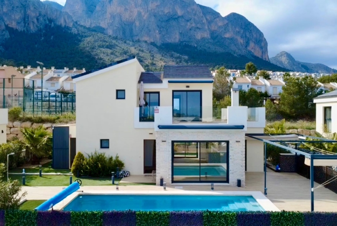 Located within a well-maintained residential community in Polop, the property enjoys uninterrupted vistas across the surrounding mountains, Altea Hills, the coastline of Altea, and the skyline of Benidorm a truly dynamic backdrop from sunrise to sunset.