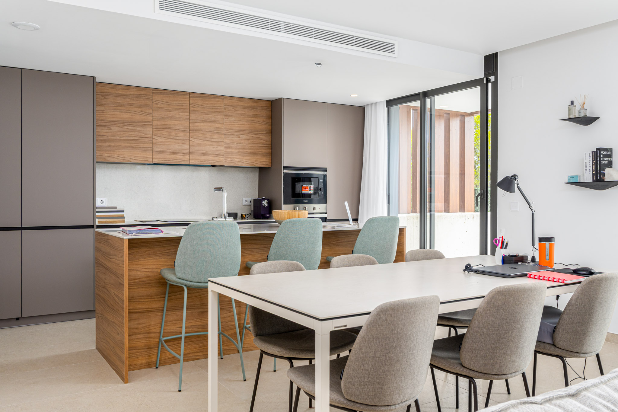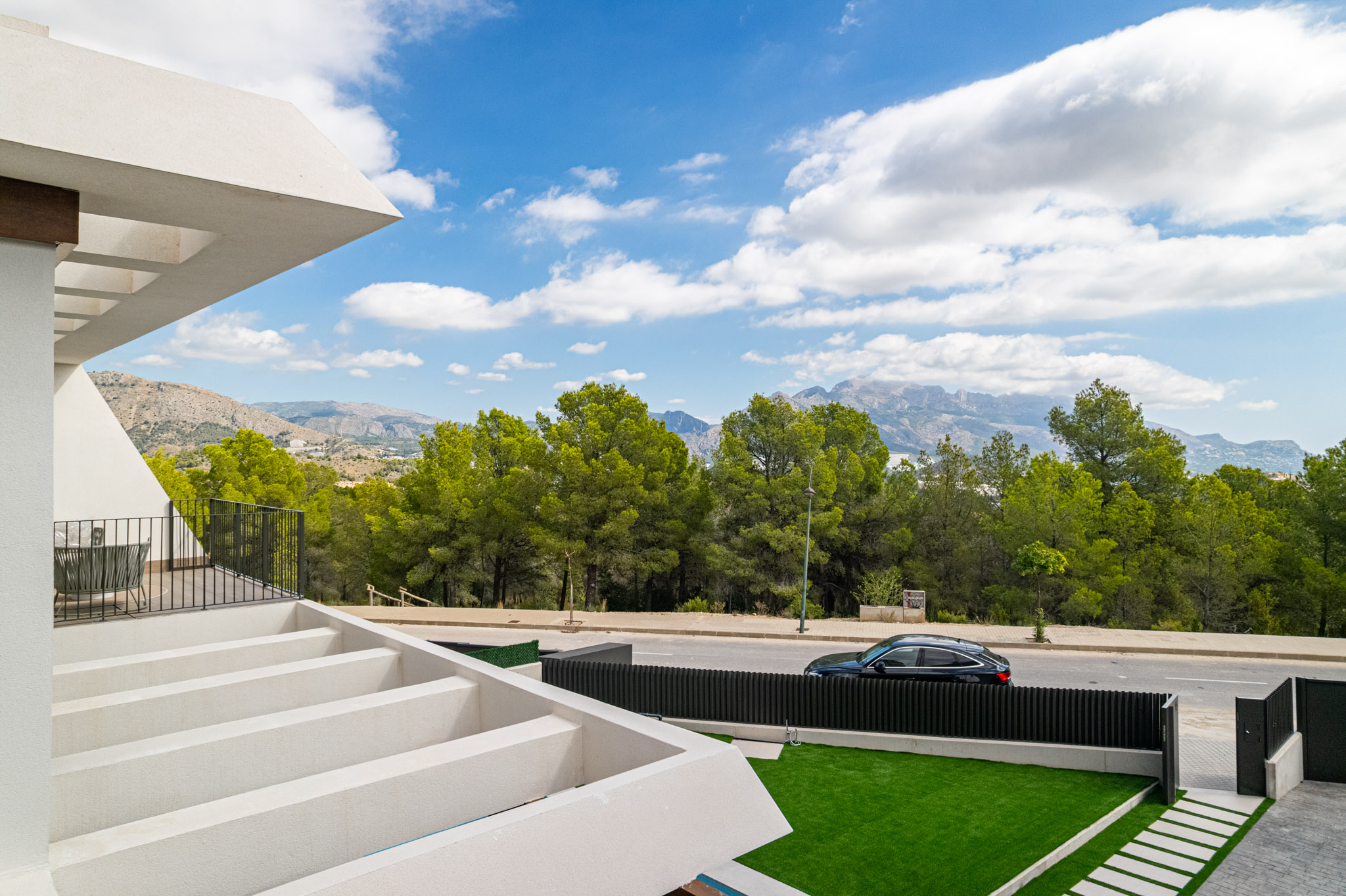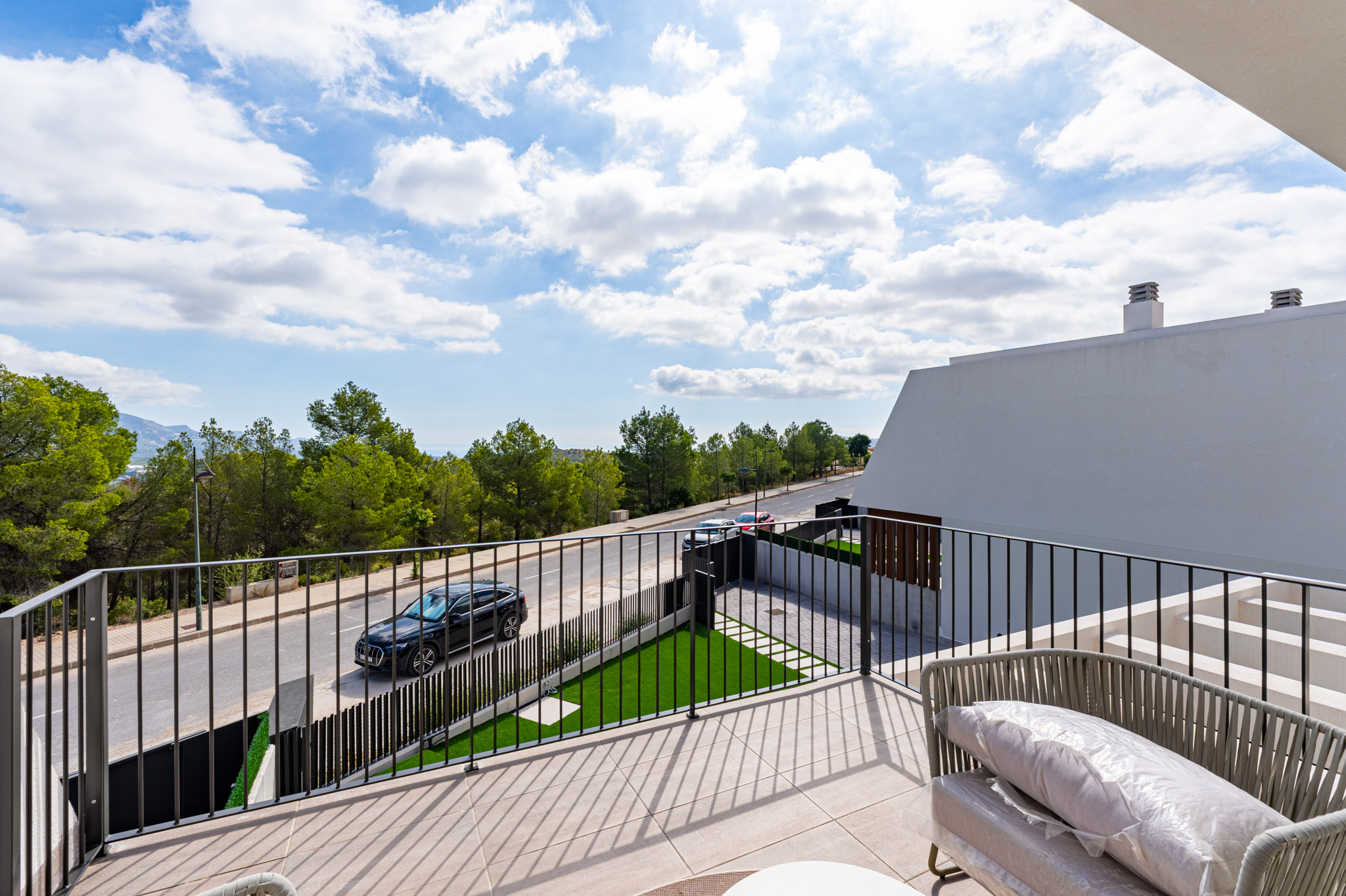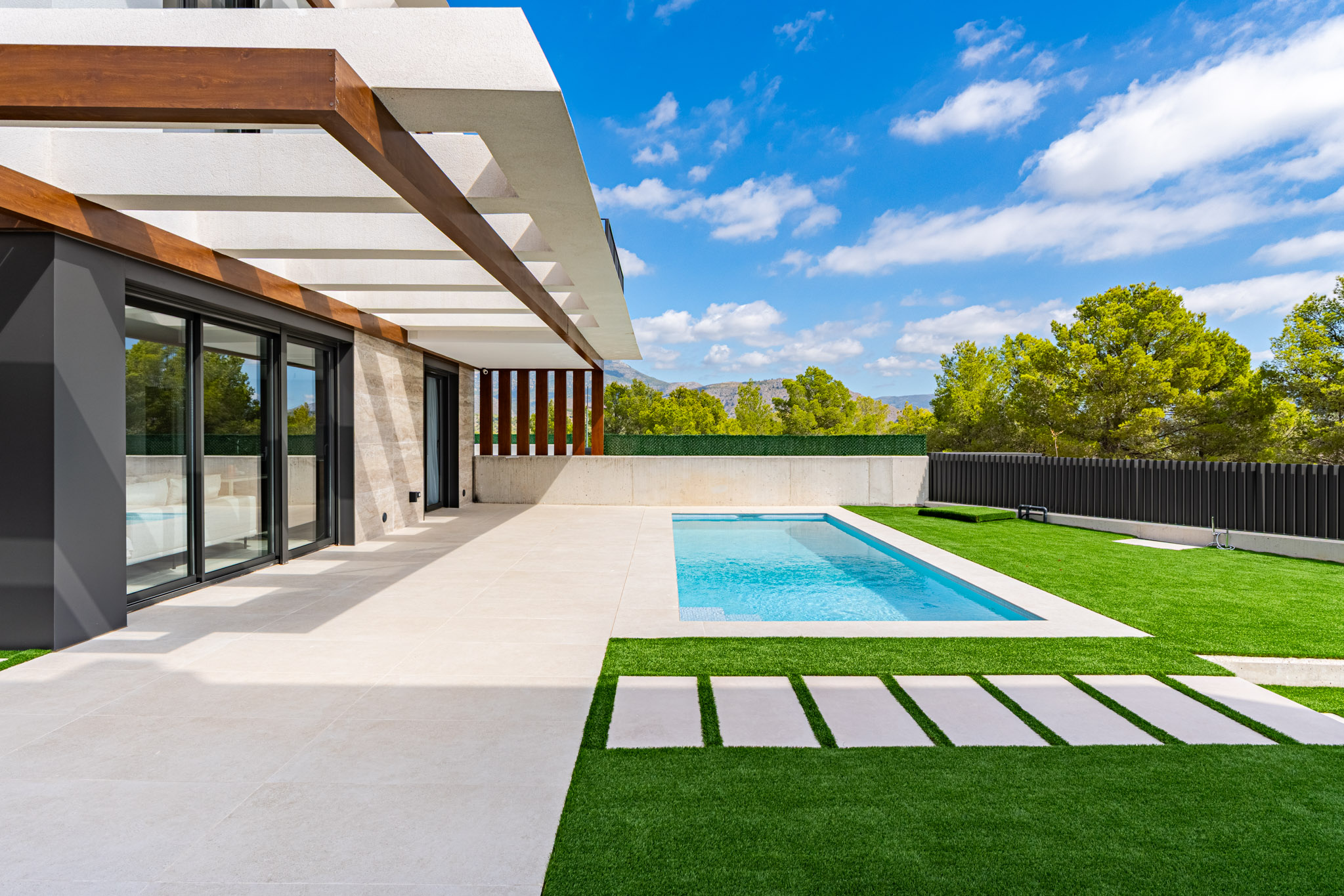 Style: Avantgarde design with simple lines and neutral tones, customizable to your taste. Openconcept kitchens and rooms that open to the outdoors, blending with the landscape. Doors: Armoured entrance, lacquered interior doors, builtin wardrobes. Bathrooms: Porcelain sanitary ware, resin shower tray, black faucets, vanity units. Kitchen: High/low cabinets, granite/resin countertop, Whirlpool appliances (Siemens upgrade available). Climate Control: Ducted A/C, aerothermal hot water, optional underfloor heating.