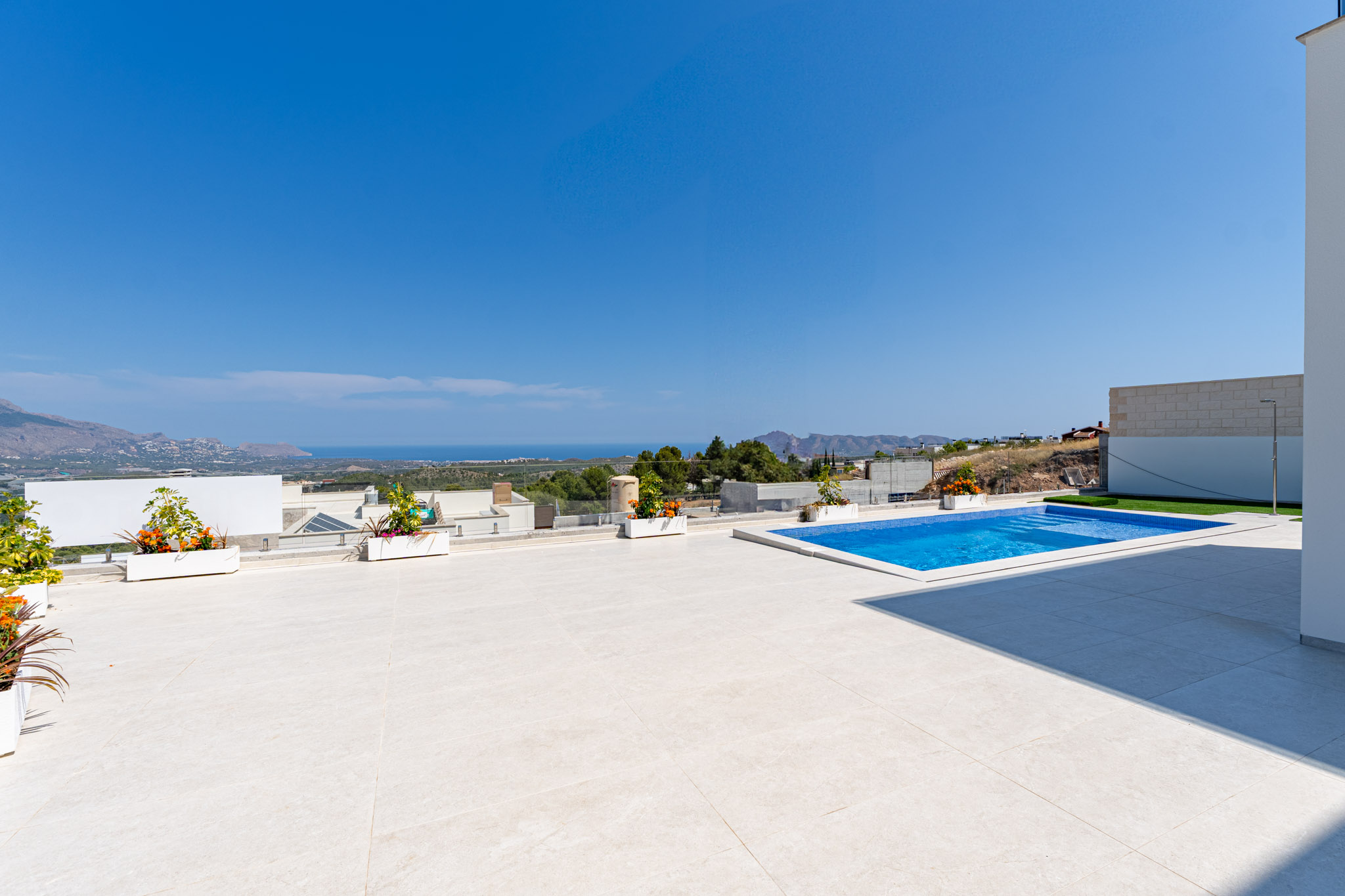 This newly built, energyefficient villa in Polop offers modern living with luxurious finishes. Ideal for those seeking a highquality home, the property features three bedrooms and three bathrooms, with a built area of 129.17 m² and an additional 36.40 m² terrace, bringing the total area to 165.57 m². The villa includes a private 7 x 3 meter swimming pool with an integrated shower, and an optional solarium for additional outdoor space.