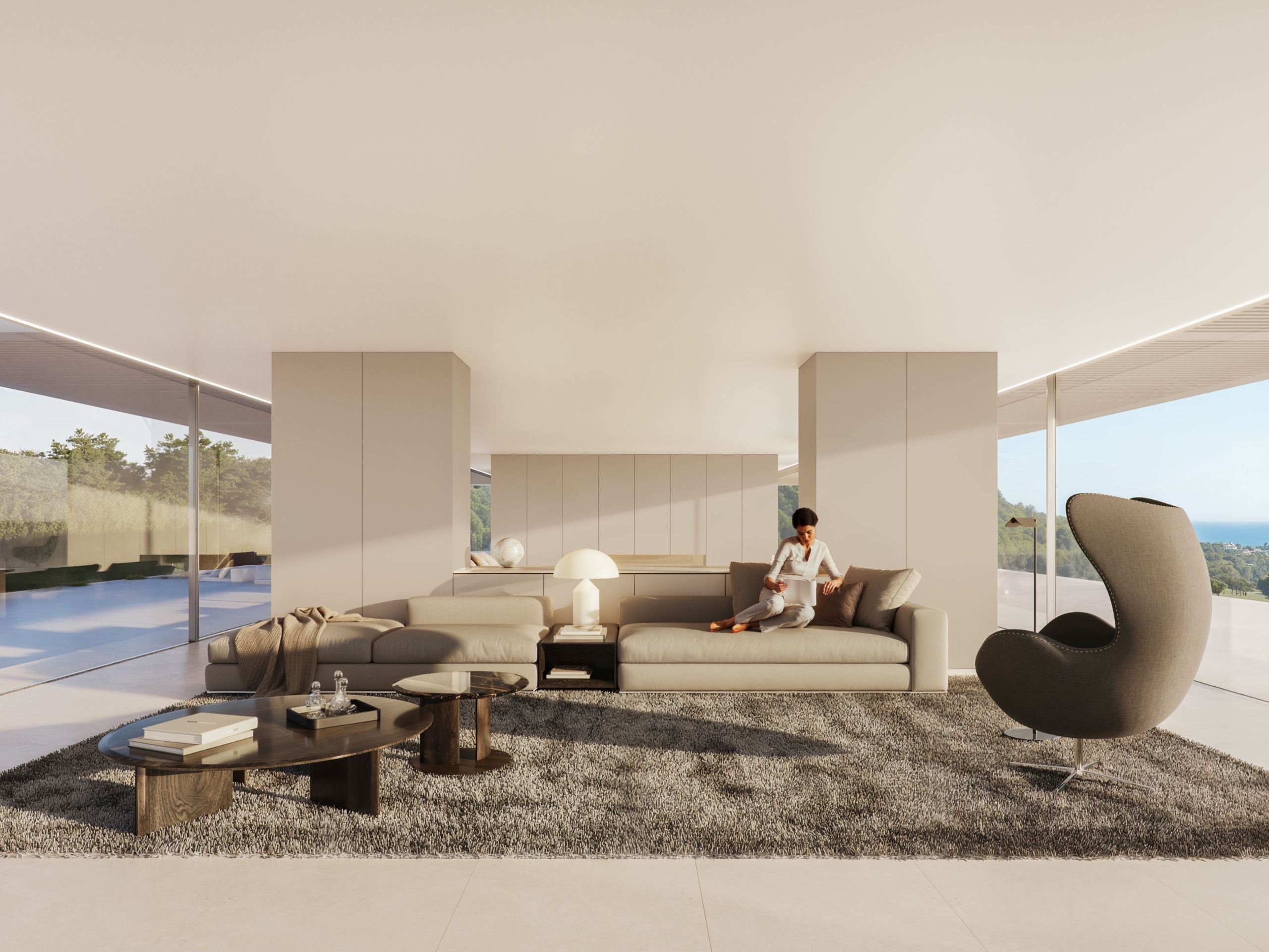 It offers bright spaces thanks to its large panoramic windows that flood the rooms with natural light. It has a wellness area with spa, gym and sauna, indoor heated pool, private cinema and wine cellar. Every detail reflects elegance and functionality, with high-end finishes and a state-of-the-art air conditioning system that guarantees comfort and energy efficiency.