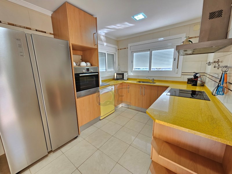 On the main floor: a bright living-dining room with direct access to a large terrace, a modern fully equipped kitchen, three bedrooms, and one full bathroom.