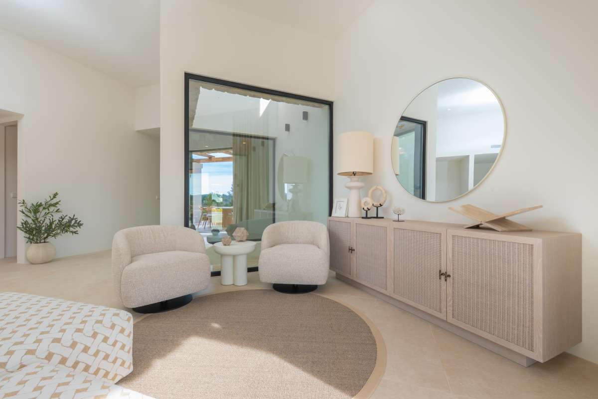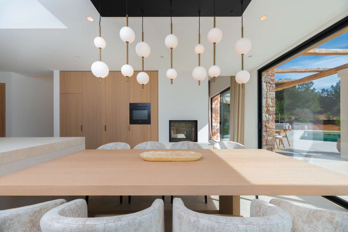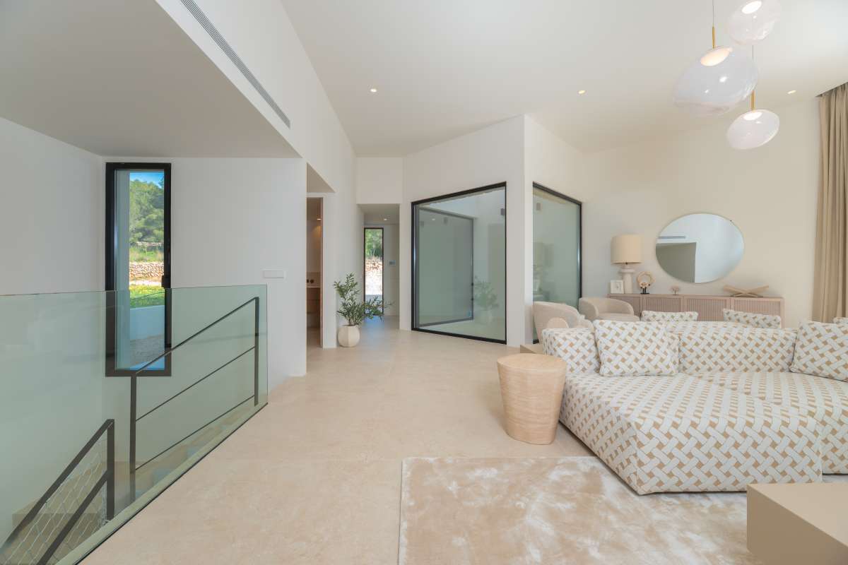 The surroundingsThis property is located in the lush landscape of Ibiza, near Santa Gertrudis, and is set on a large plot of 23,000 m2. Around the property you will find olive groves, orange trees, pine trees and the typical little stone walls. This Finca is just 5 minutes away from the lively village of Santa Gertrudis and 4 minutes away from the prestigious Morna International School, which is ideal for families with children. Moreover, Ibiza Town is only a 15-minute drive away and the airport only 20 minutes, allowing for easy and comfortable travel. Dream PropertiesDevelopment has proudly started the construction of this spectacular rural villa.The villaThis newly built villa in Ibiza is the epitome of modern architecture and eco-friendly design. The first floor welcomes you with a spacious hall of approximately 26 m2, which leads to three beautifully designed bedrooms, each with its own unique character. The first bedroom, of 20 m2, and the second, of 22 m2, both have private bathrooms with shower, sink and toilet. The master bedroom, a generous space of about 30 m2, offers a luxurious bathroom with double sinks, a stylish shower, toilet and a freestanding bathtub. This makes it the ultimate oasis of peace and privacy. The first floor also houses a spacious living room of about 50 m2, which flows seamlessly into a generous kitchen of about 40 m2. The living room, embellished with a large 5 m2 loft and an elegant see-through fireplace connecting the space to the kitchen, is directly adjacent to a veranda with an enchanting view of the pool. This open and flowing design combines the perfect balance between inside and outside, allowing the natural beauty of Ibiza to flow into your everyday life. A spacious open staircase leads to the basement, an addition that is both functional and aesthetically pleasing. The basement, with an additional living area totaling 165 m2, offers a wealth of possibilities. It includes two technical rooms, the larger of which can be accessed from the outside - ideal for maintenance work - and another space of 83 m2 that can be furnished to your own taste with facilities such as a sauna, cinema or gym. Also located here is a separate, spacious bedroom of 25 m2 with a private bathroom of 5 m2, and is equipped with natural light. Also, the basement offers the possibility for a guest house or nanny room of approximately 27 m2 with a separate access from the outside, offering additional flexibility and privacy. This villa combines state-of-the-art design elements with an eco-friendly approach, making it an ideal choice for those who appreciate both luxury and sustainability.The outdoor spacesThe beautifully landscaped gardens are elegantly lit and designed with minimal maintenance in mind. An additional guest house of 30m2 can be constructed on the plot in the future. Two charming original Ibicenco structures are to be found in the inner courtyard. This all adds up to a very exceptional property, which is realized to the highest quality standards and is located in a truly exceptional location.Project websiteThis newly built villa has its own project website with much more information, images and floor plans. Click the button ""click here for the project website"" at the top of this page for more info.