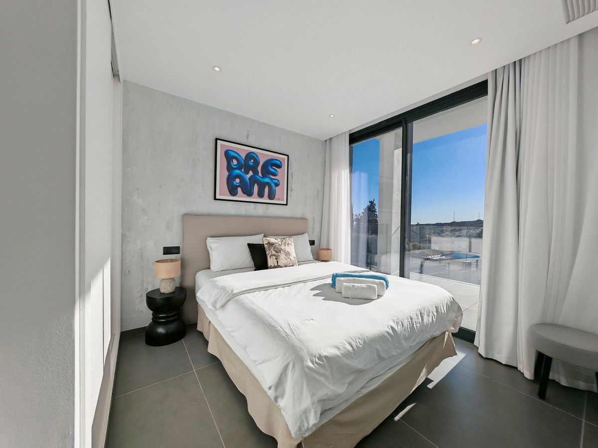 Villa for sale in Valle Romano, Estepona with 4 bedrooms, 3 bathrooms, 1 on suite bathroom, 1 toilet and with orientation west, with private swimming pool, private garage (1 parking spaces) and private garden. Regarding property dimensions, it has 316 m² built and 495 m² plot. Has the following facilities amenities near, transport near, air conditioning, fully furnished, fully fitted kitchen, basement, guest room, alarm, brand new, guest toilet, kitchen equipped, living room, country view, mountain view, golf view, heated pool, automatic irrigation system, smart home system, laundry room, internet - wi-fi, covered terrace, fitted wardrobes, garden view, pool view, underfloor heating (bathrooms), close to sea / beach, close to golf, uncovered terrace, glass doors, open plan kitchen, close to shops, close to town, close to port, close to schools and surveillance cameras.