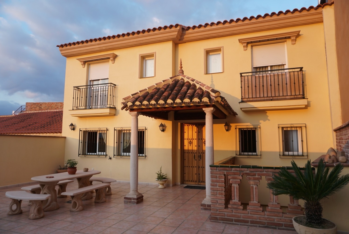 This is a spacious villa in Velez Malaga. It is only 250m from the courthouse, it is close to shops, restaurants, pharmacies and schools. You can access everything on foot. The house is divided into 4 floors. At the entrance of the house, we find a large outdoor patio. When we enter we find a large kitchen with a dining room on the right hand side. The kitchen is fully equipped. It enjoys a lot of natural light. On this floor there ́s also a guest bathroom. From this floor we also have access to the private swimming pool which has a large patio where you can enjoy the sun or a nice barbecue in summer. Also, on this floor there is a laundry room. Upstairs we find the bedrooms. There are 2 bedrooms, each one with a built-in wardrobe. There is a spacious bathroom, with a large bathtub and two sinks. There ́s also the master bedroom on this floor. On the ground floor there is a large living room, with a fireplace. On this floor there is also a bathroom and a small outdoor patio. In addition, there are 2 bedrooms, which are currently used as an office and a dressing room. Going down basement we find the garage and the storage room. It also has a small toilet. It also has a wine cellar and a small bar. We are pleased to be able to present this dream property to you soon, either personally or via virtual viewing. Because this world, it is unique - just like our Axarquía. In Andalusia. On the Costa del Sol. Here, on the sunny side of life...