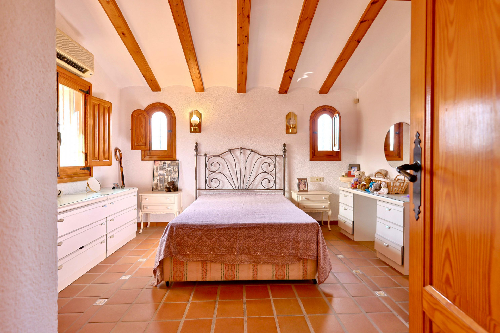 Villa for sale next to Jávea Golf Club with open views over green areas. The main living accommodation is arranged over the two upper floors, while the lower level houses a spacious independent apartment that is also connected internally by staircase. Altogether, this impressive 384 m² property offers five double bedrooms and four bathrooms. The villa benefits from insulated walls, underfloor heating, air conditioning, high-speed internet and an efficient solar panel system providing both hot water and electricity. Over the years, the property has undergone several improvements and updates, ensuring it remains in excellent condition. Parking is available right beside the main entrance. Access is via an attractive porch leading into a generous and well-organised hallway that distributes the home efficiently. The modern, fully equipped kitchen offers ample storage space and direct access to an open patio with barbecue area and connection to the covered terrace. The lounge and dining area are elegantly separated by a traditional tosca stone arch. Sliding glass doors from the dining room open onto the covered terrace. The bright and spacious living room enjoys open views of the golf course and is centred around a cosy fireplace framed in tosca stone. On the main floor there are three very spacious double bedrooms, all with fitted wardrobes, sharing two full bathrooms. The upper floor is dedicated to the master bedroom, offering added privacy, its own terrace, en-suite bathroom, fitted wardrobes and air conditioning. The lower level features an independent apartment of approximately 138 m², accessible via the internal staircase or directly from the garden. It comprises a landing area, a large room that could be converted into a sixth bedroom, a double bedroom, separate bathroom, living room with access to a large glazed terrace used as a dining area, kitchen with utility patio and a storage room. The private swimming pool is located on the lower section of the plot, surrounded by spacious terraces and landscaped gardens. The property offers parking both in front of the main entrance and on the lower level, where the apartment and integral garage are situated. This spacious villa enjoys a strategic location, close to local and international schools, supermarkets and just an 8-minute drive to the beaches of Jávea or Moraira. A comfortable and highly attractive setting for both permanent living and a holiday home.